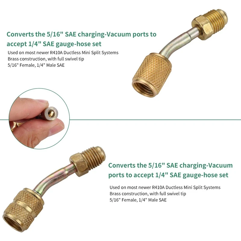 1. пара R-134A адаптеров, 1 шт AC переключатель клапан с адаптером бака, один классический разгрузчик катушки, и один кондиционер, мини-сплит-система зарядки вакуумный порт адаптер в 2 размерах. поставляется с парой R-134A адаптера, 1 шт. ac может кран клапан с адаптером бака, 1 Классический клапан для удаления сердечника.