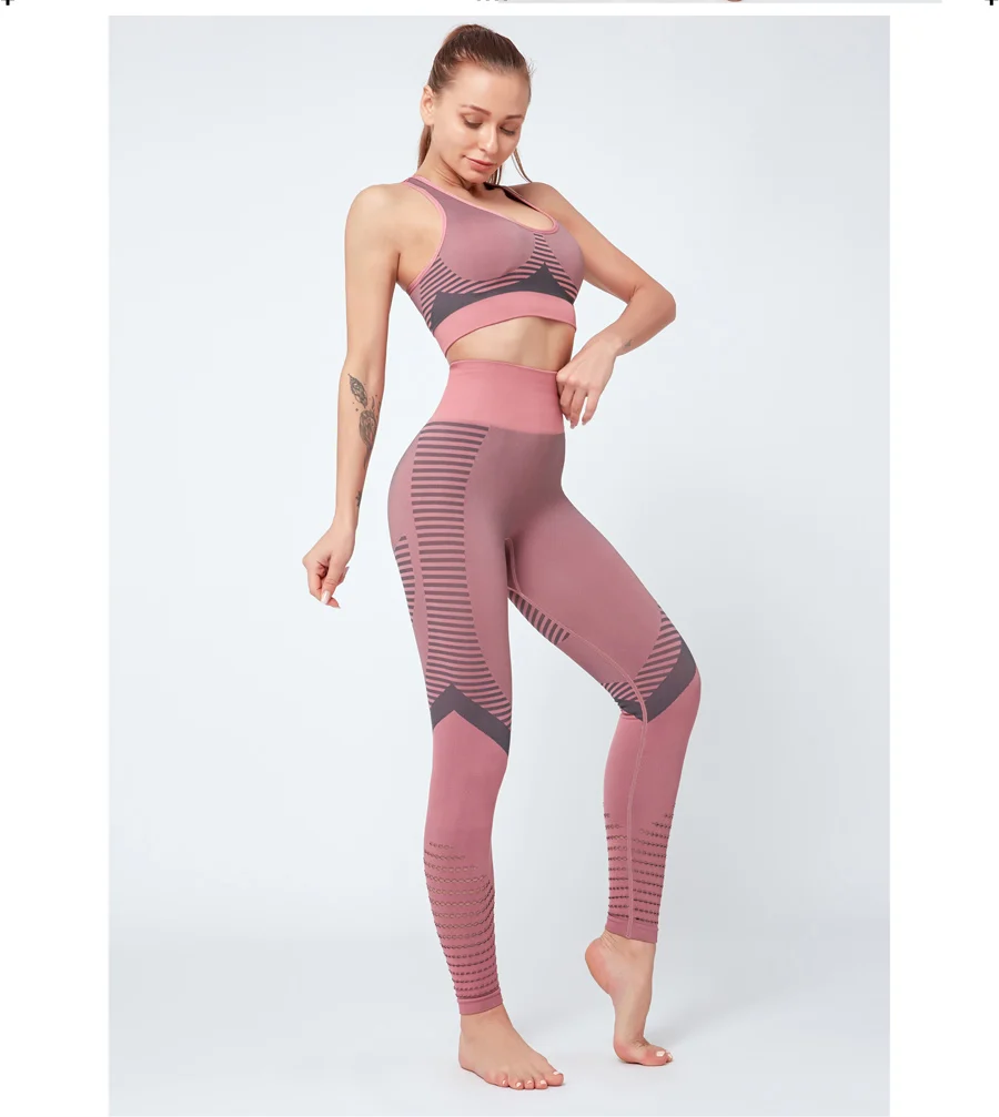 Комплект спортивный женский для фитнеса бесшовный леггинсы топ бюстгальтер