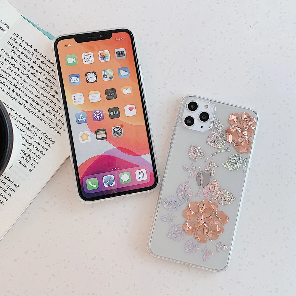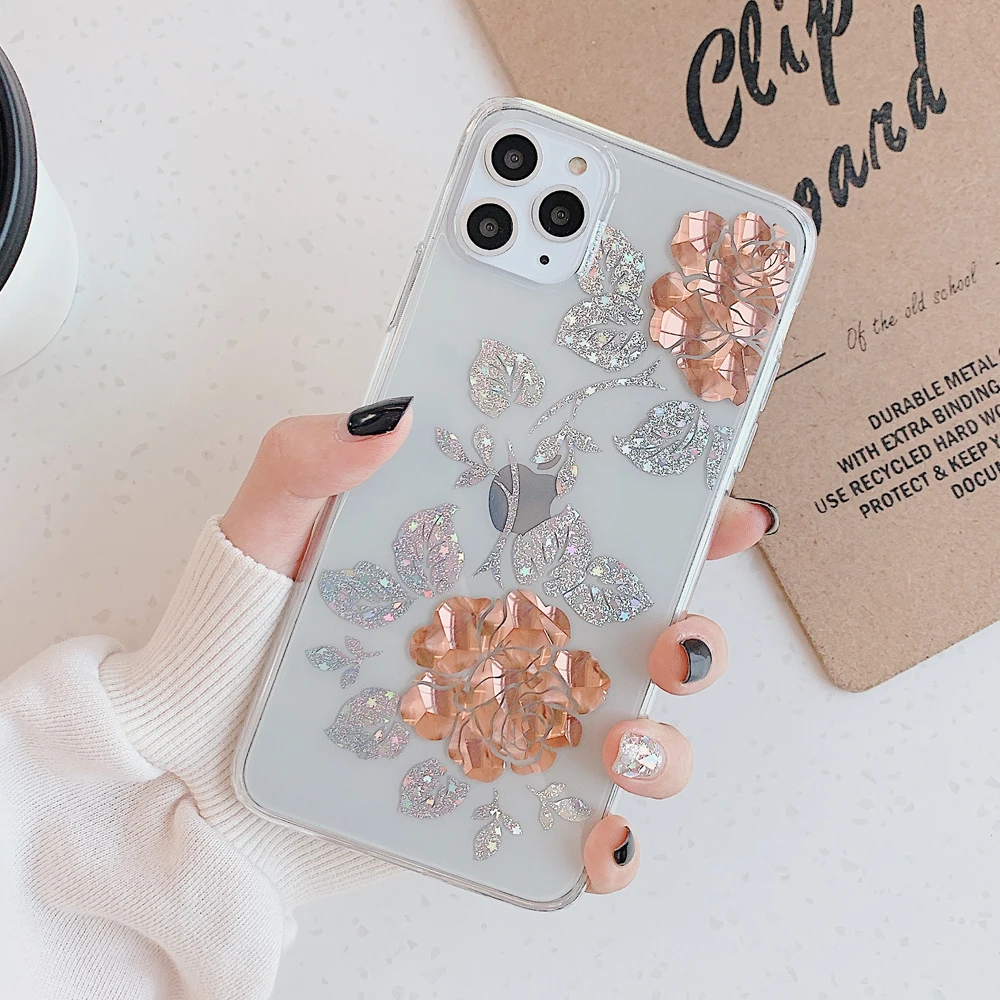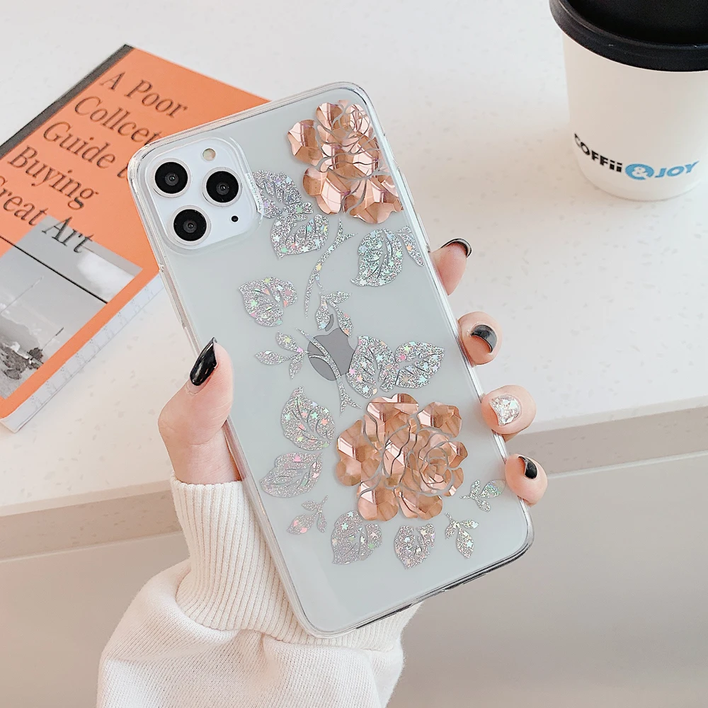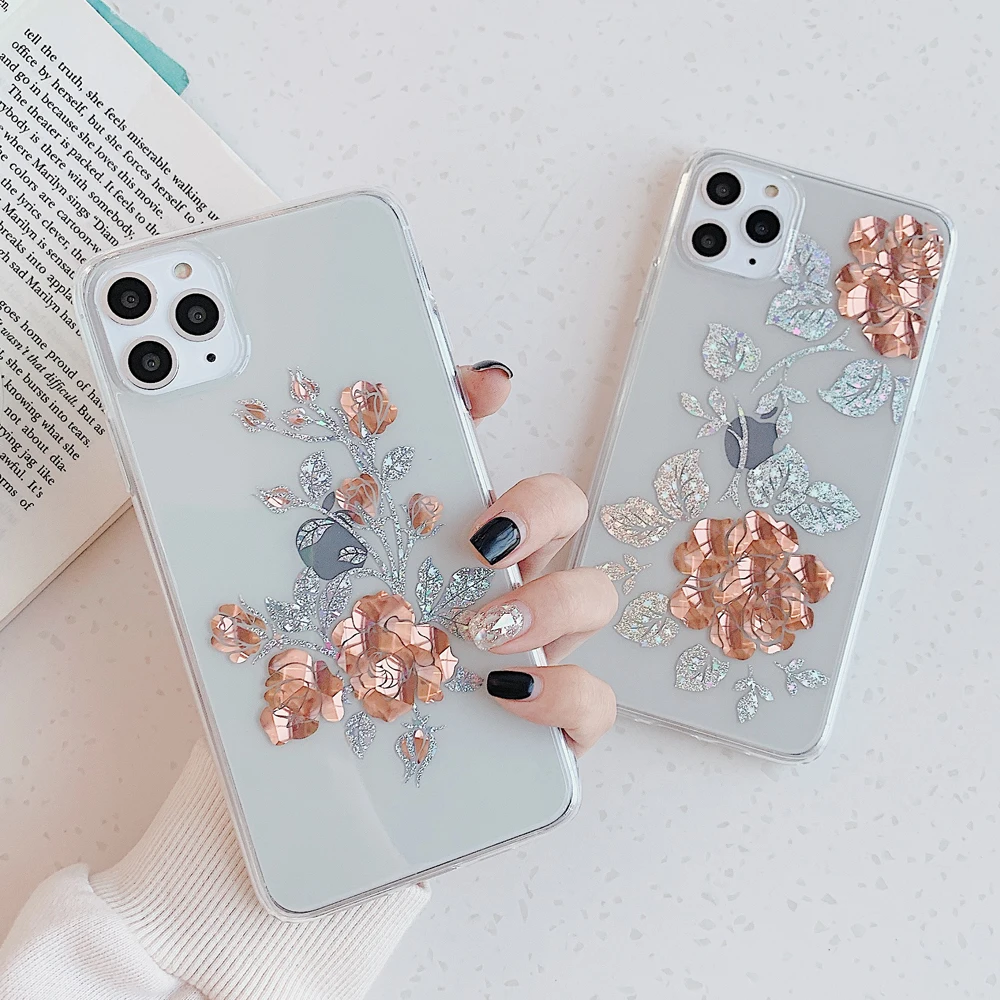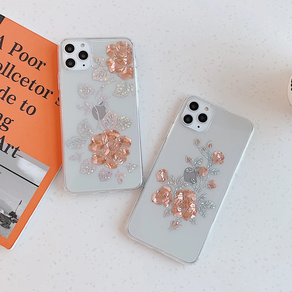 Чехол LOVECOM для телефона iPhone 11 Pro Max XR XS Max 7 8 Plus X, мягкий прозрачный чехол с гальваническим покрытием и блестящими розами, чехол в подарок