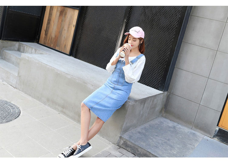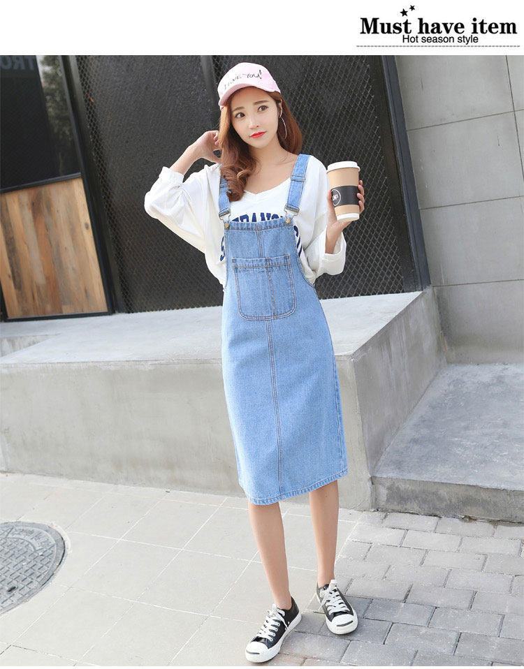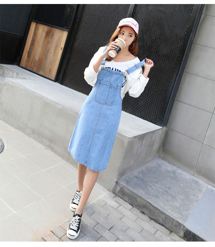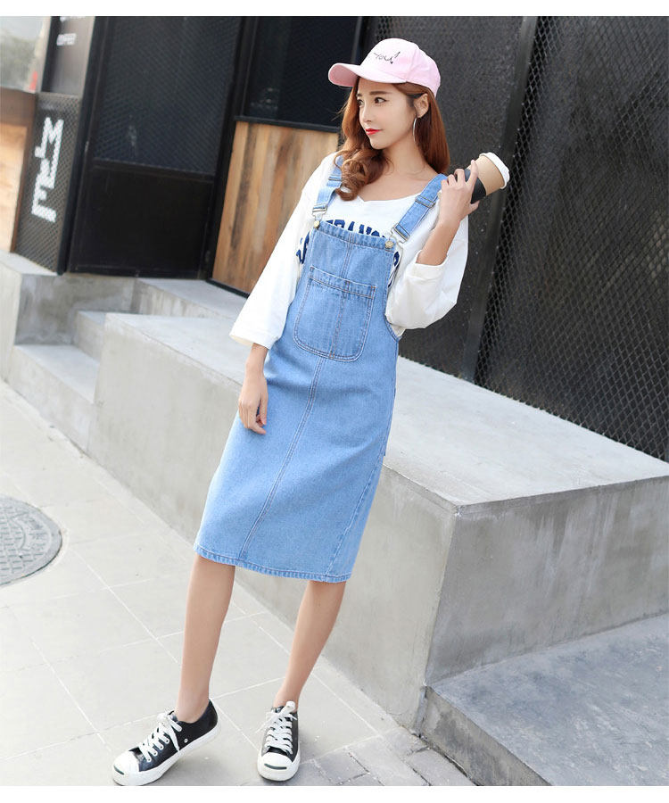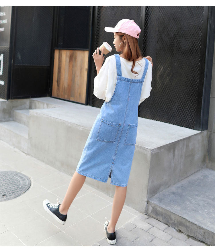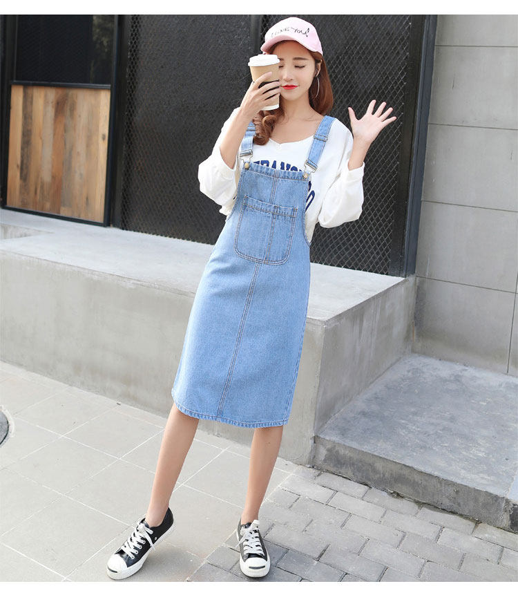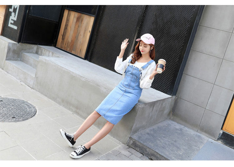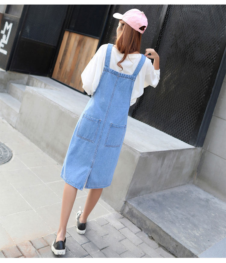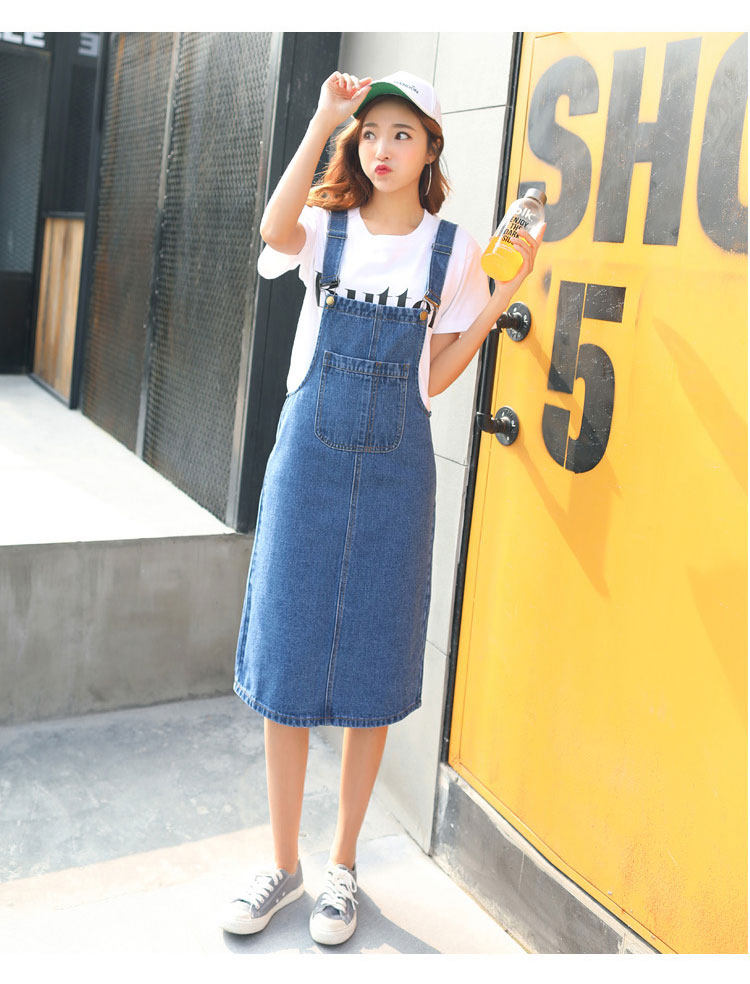 2020 Spring New Arrival Solid Suspender Girls Dress Knee-Length Basis Denim Dress Sweet Preppy Style Korean Style DG80