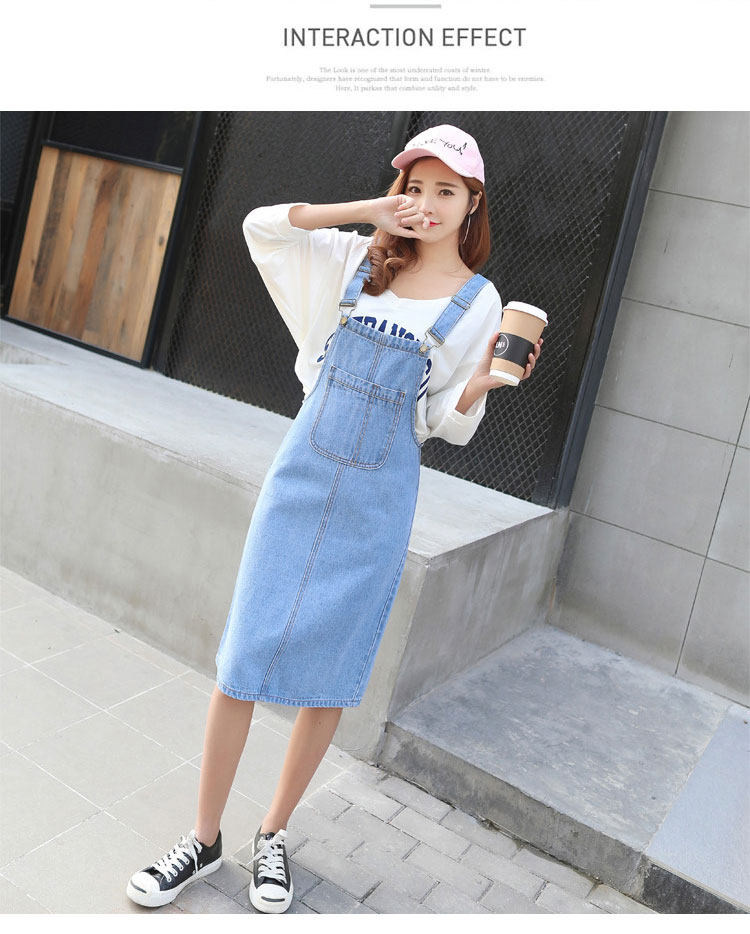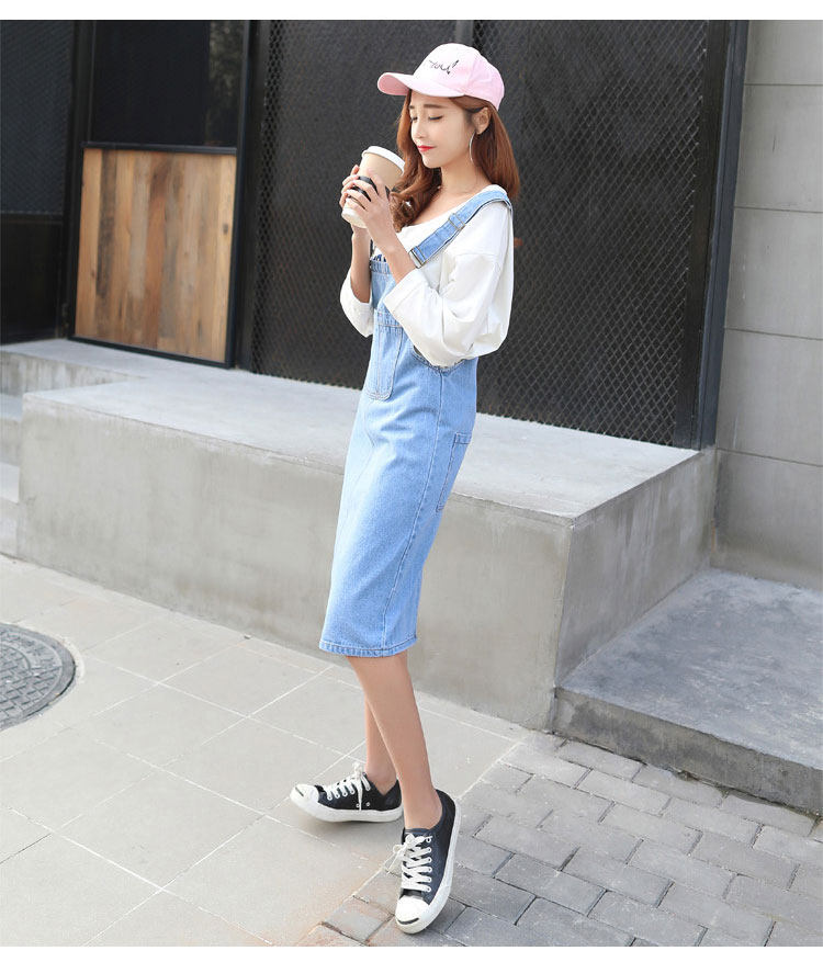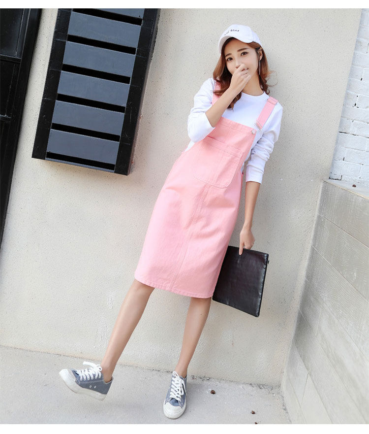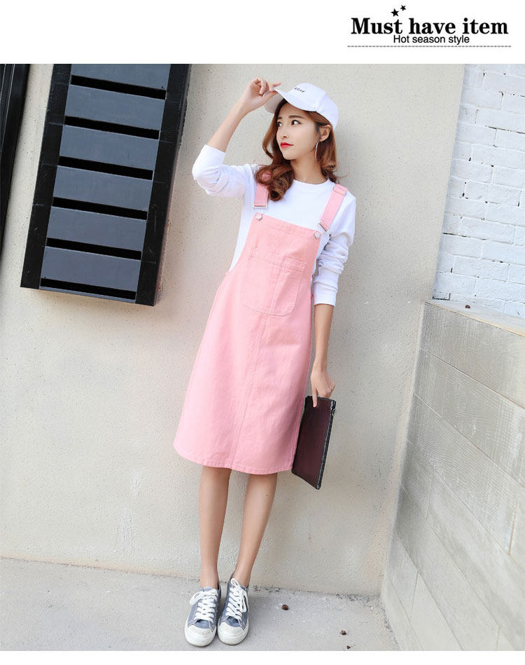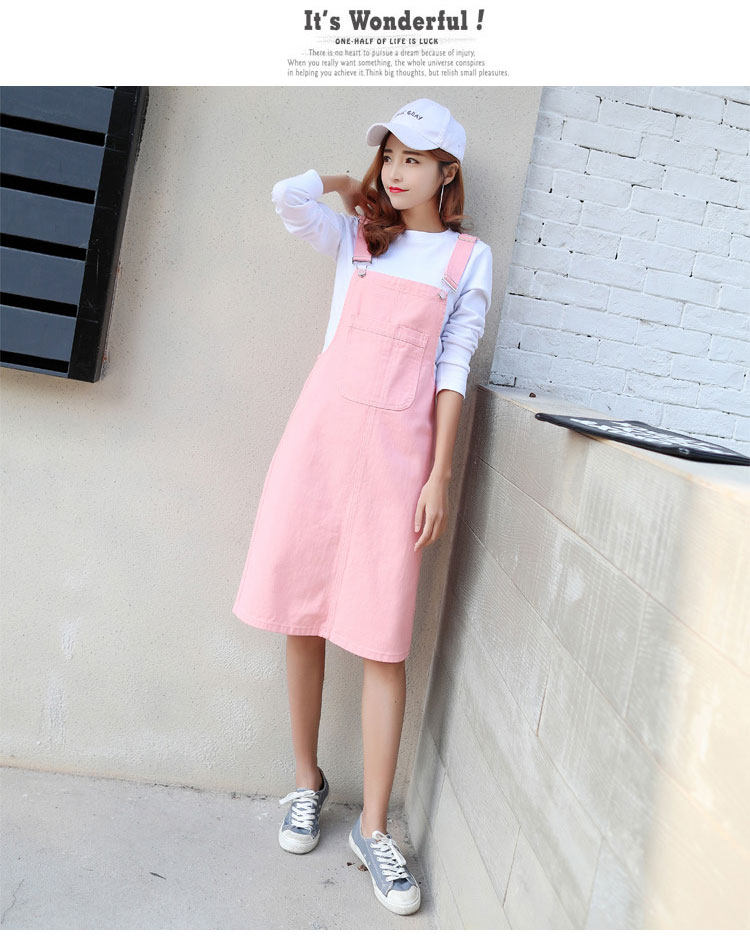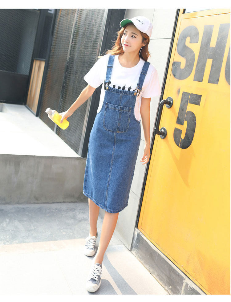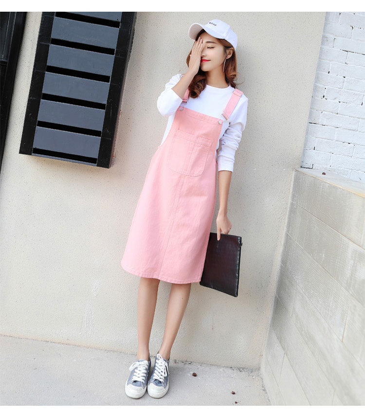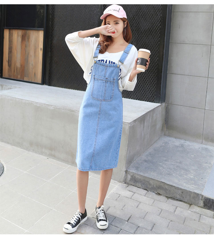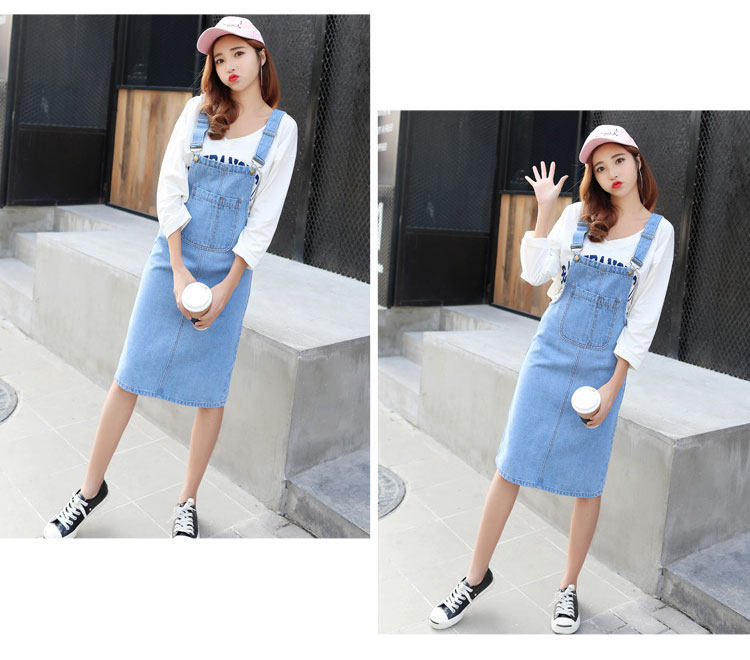 2020 Spring New Arrival Solid Suspender Girls Dress Knee-Length Basis Denim Dress Sweet Preppy Style Korean Style DG80