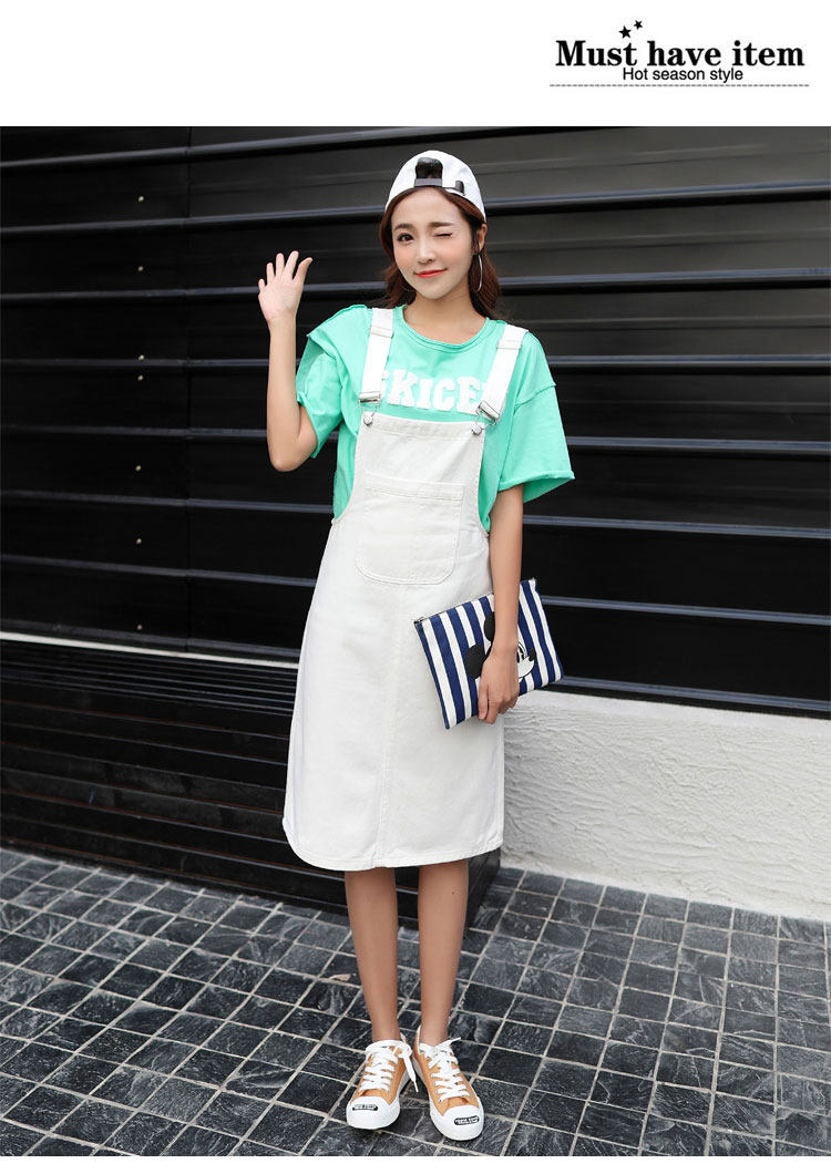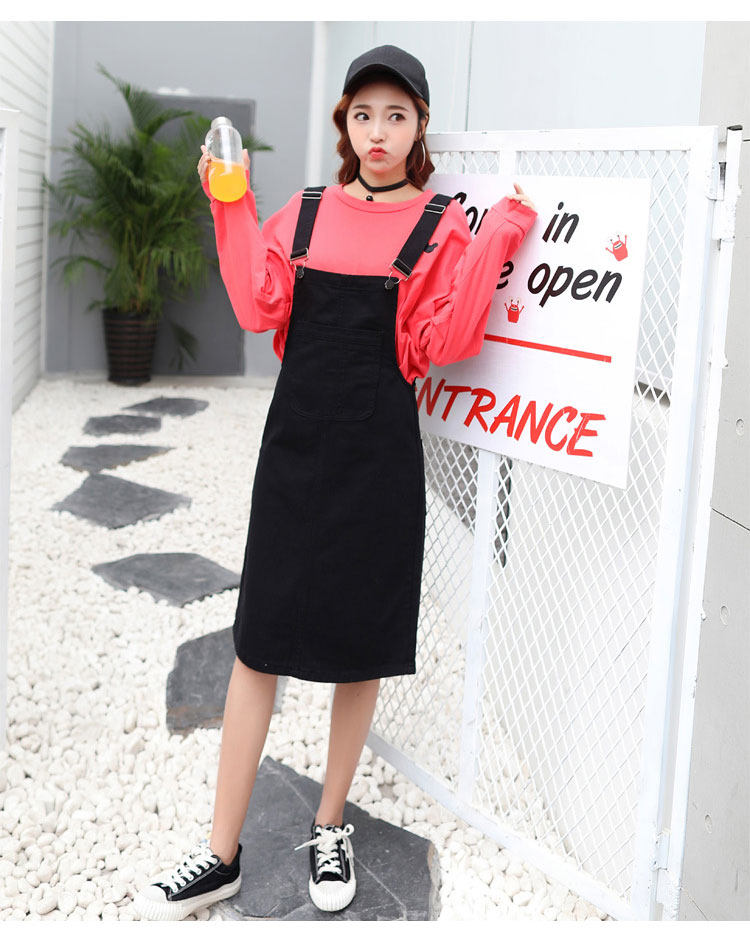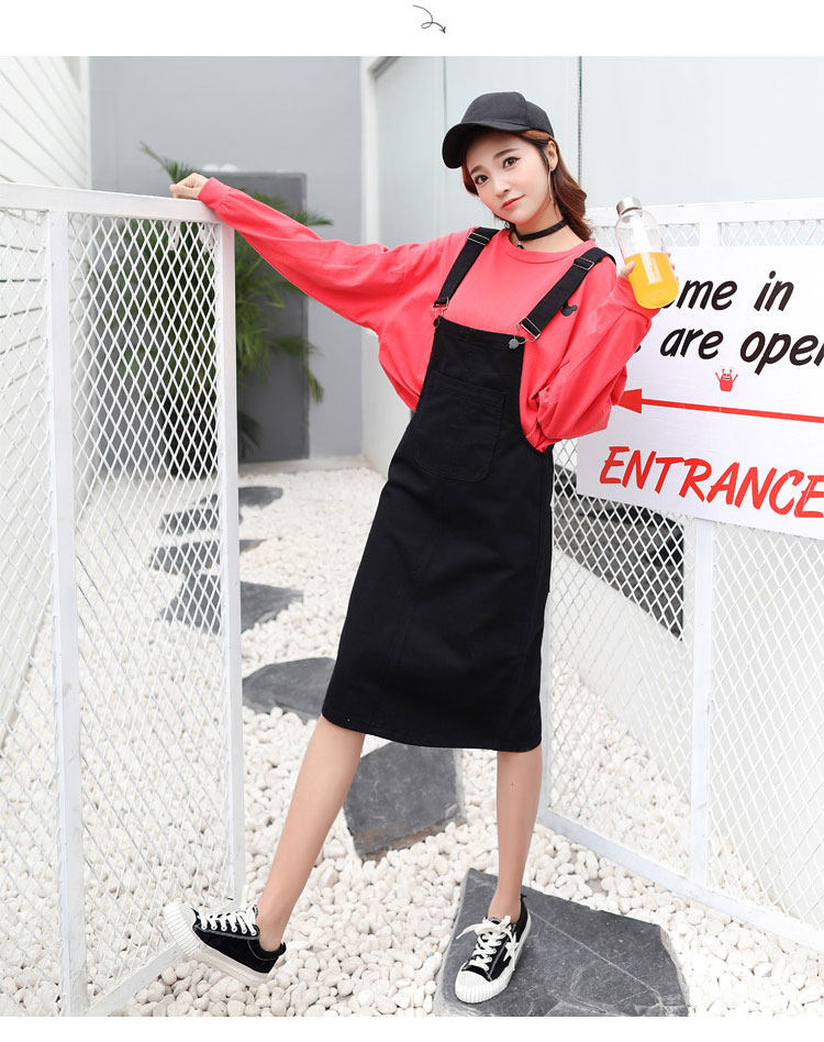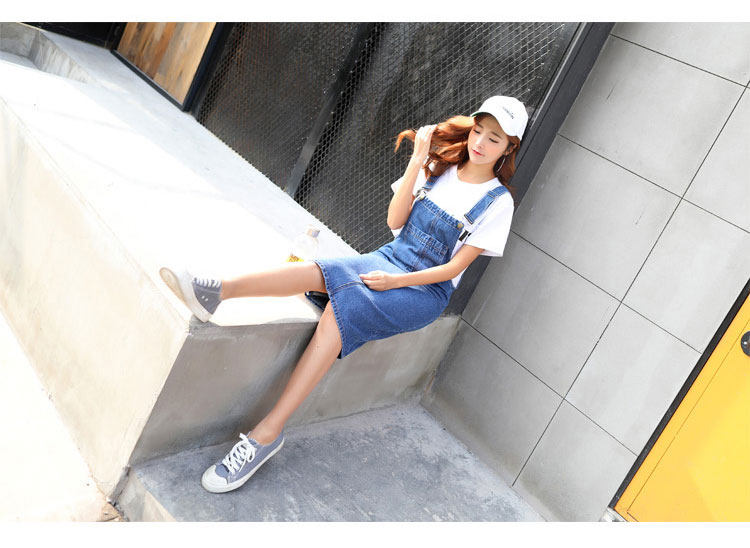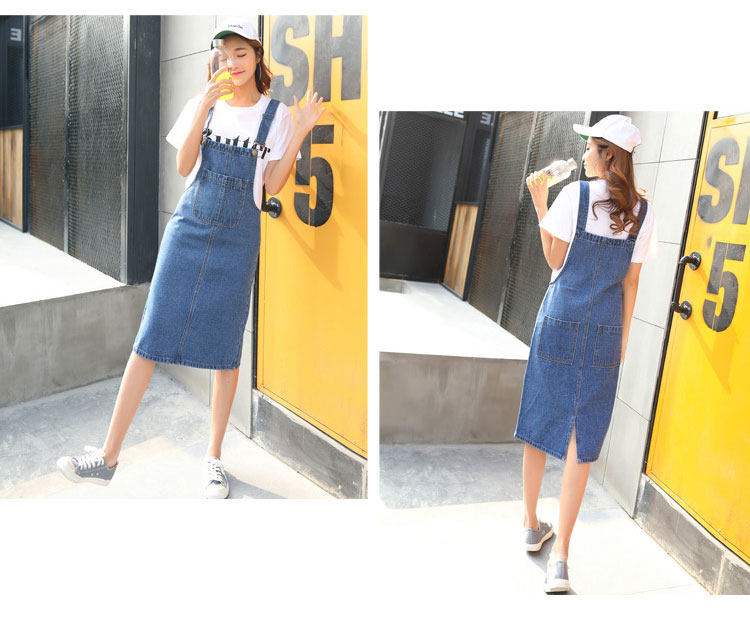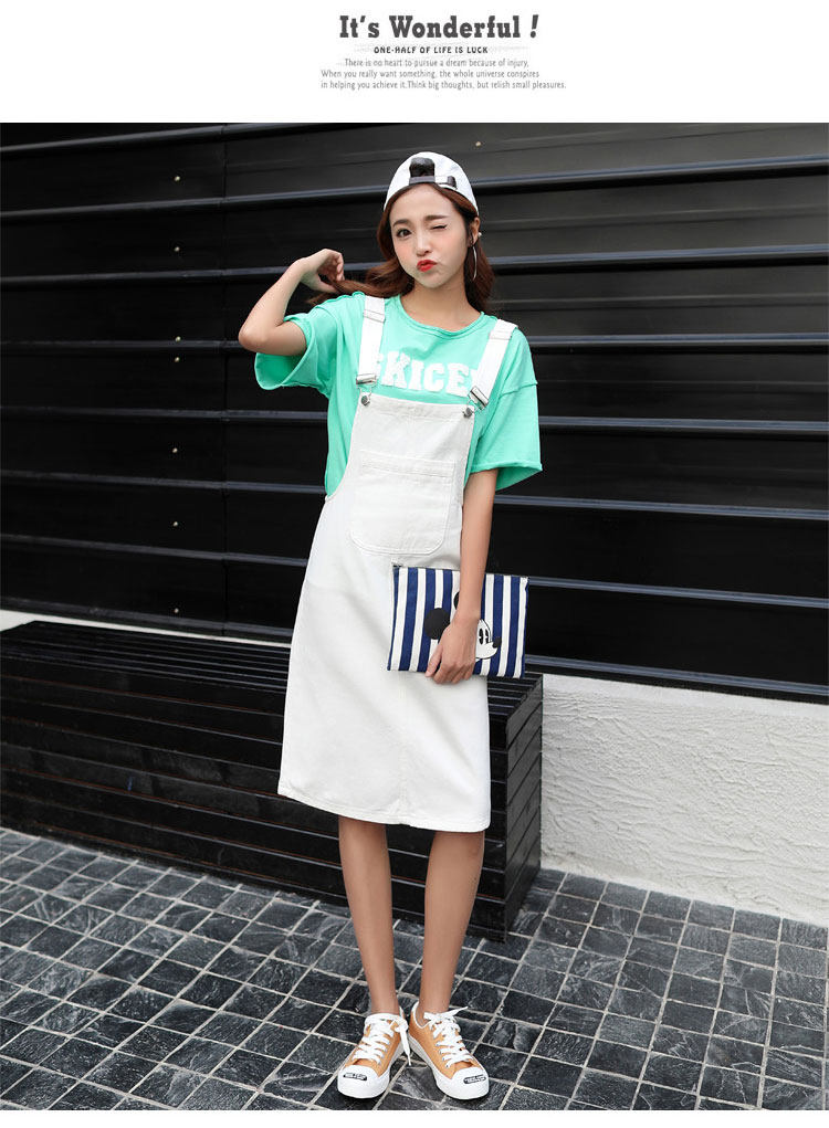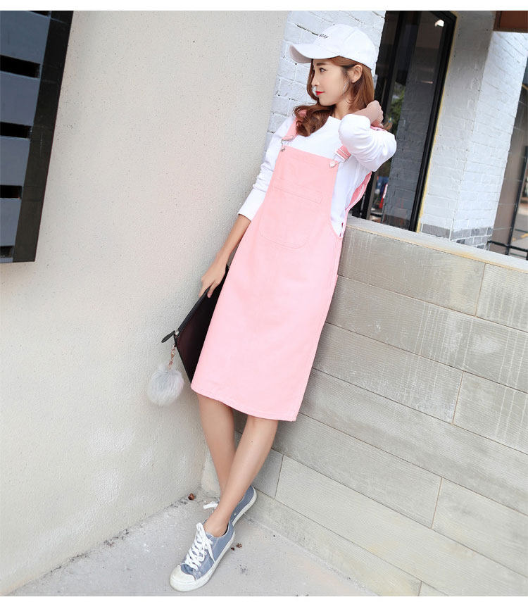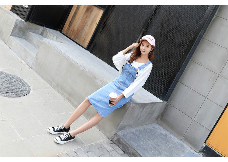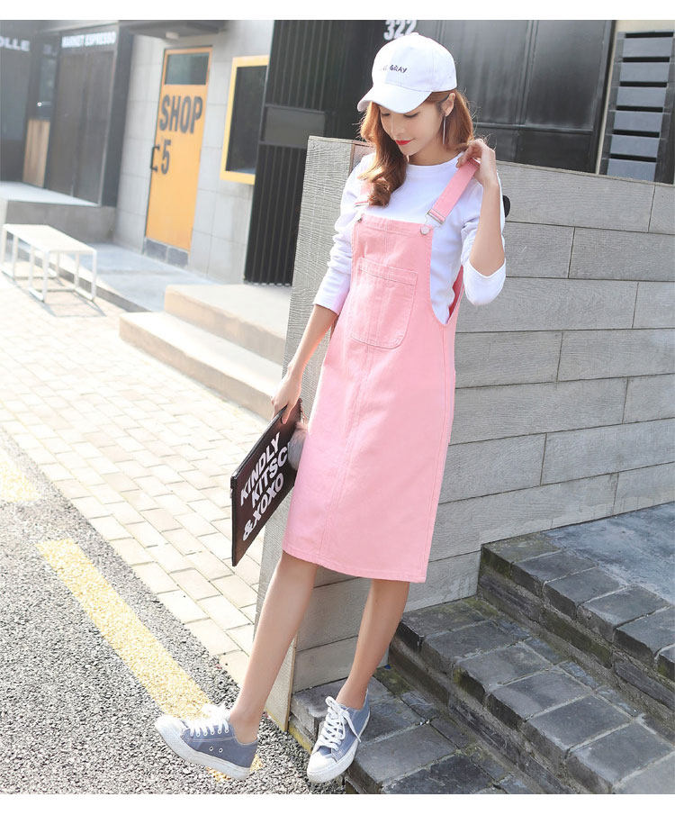 2020 Spring New Arrival Solid Suspender Girls Dress Knee-Length Basis Denim Dress Sweet Preppy Style Korean Style DG80