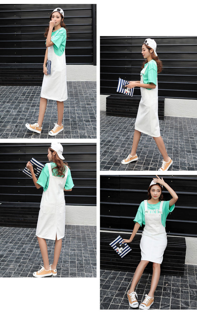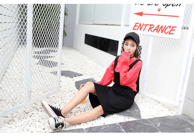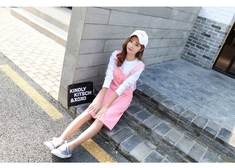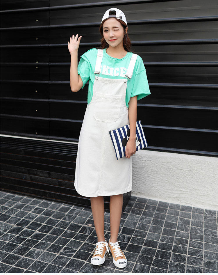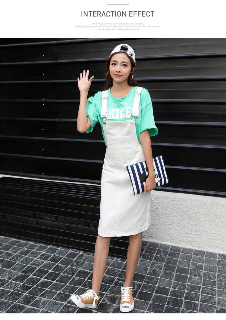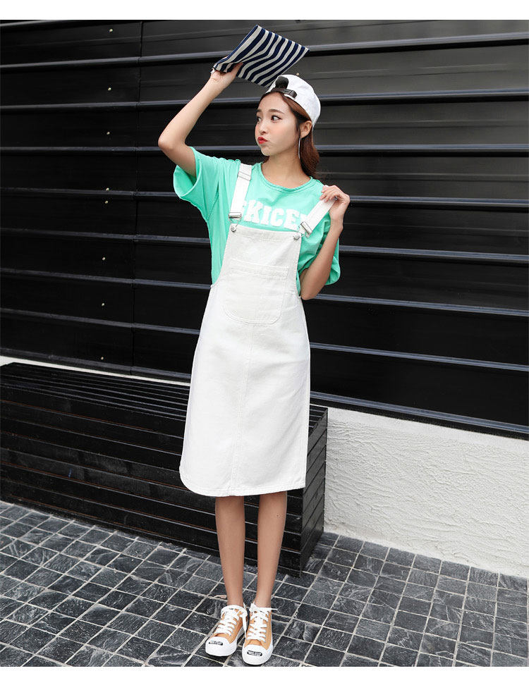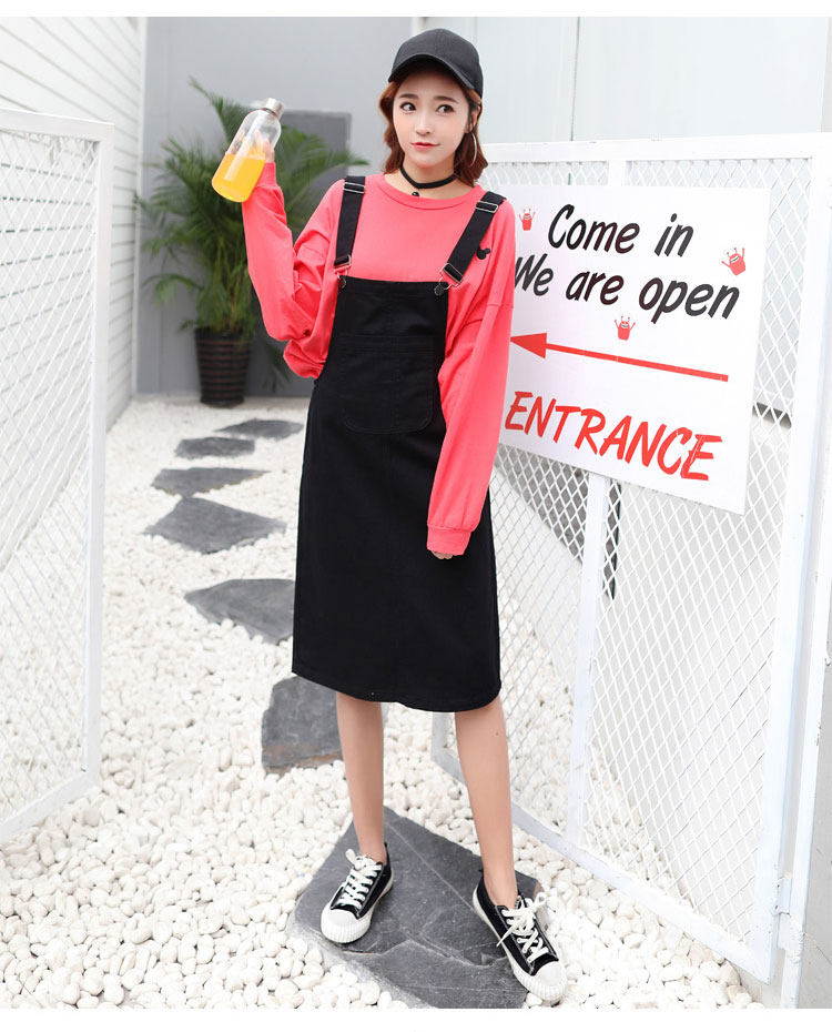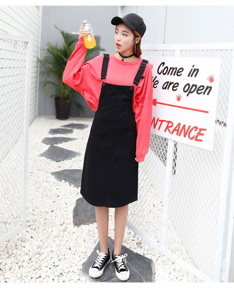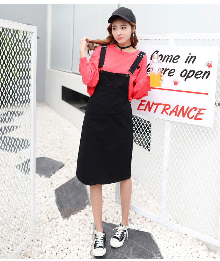 2020 Spring New Arrival Solid Suspender Girls Dress Knee-Length Basis Denim Dress Sweet Preppy Style Korean Style DG80