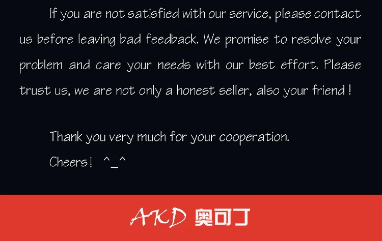 Магазина Guangzhou AKD Automotive Accessories Co., Ltd работает с 14.11.2015. его рейтинг составлет 89.95 баллов из 100. В избранное добавили 5984 покупателя. Средний рейтинг торваров продавца 4.6 в продаже представленно 776 наименований товаров, успешно доставлено 1098 заказов. 597 покупателей оставили отзывы о продавце.