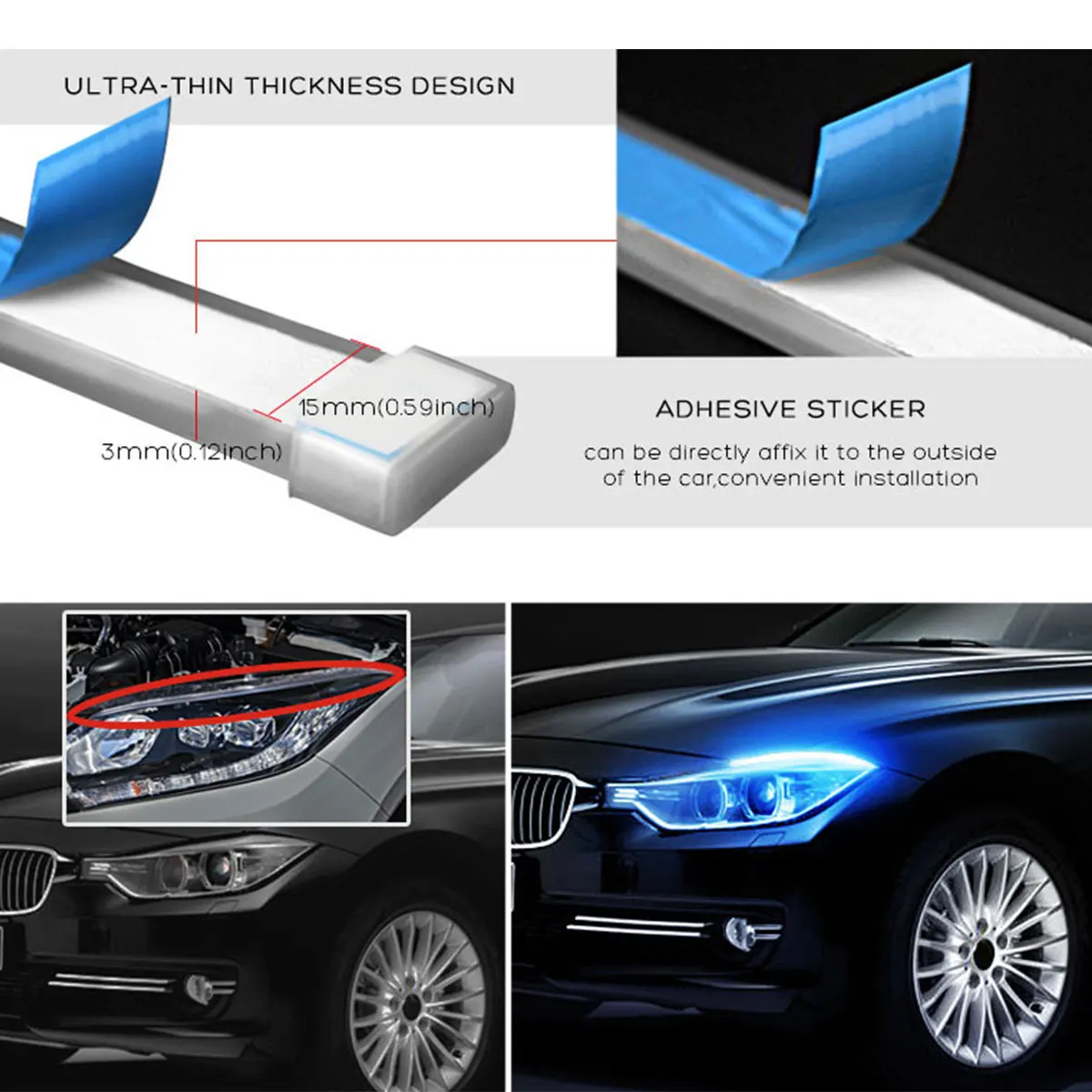Тип: Гибкий Мягкий светодиодный светильник Материал: ABS кремния Светодиодный Тип: SMD 2835 Входное напряжение: 12 В Светильник Цвет: белый/синий/лед-синий/розовый/синий/розовый Светильник Длина: 30 см/45 см/60 см Костюм для: Универсальный Автомобильный Стайлинг Особенности Светодиодный гибкий мягкий светодиодный светильник DRL для автомобиля. Можно нарядить фары, похожие на оригинальный эффект. Водонепроницаемый-как для внутреннего/внешнего использования автомобиля, просто установка. Применение Ангел глаз, Проводное соединение Красный провод: подключение к фаре или АКК () Черный провод: подключение к наземному светильник Посылка 2 шт. DRL светодиодный светильник