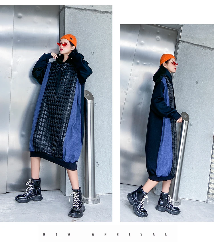 QING MO зимнее женское платье с капюшоном 2020 женское джинсовое Лоскутное Платье плотное