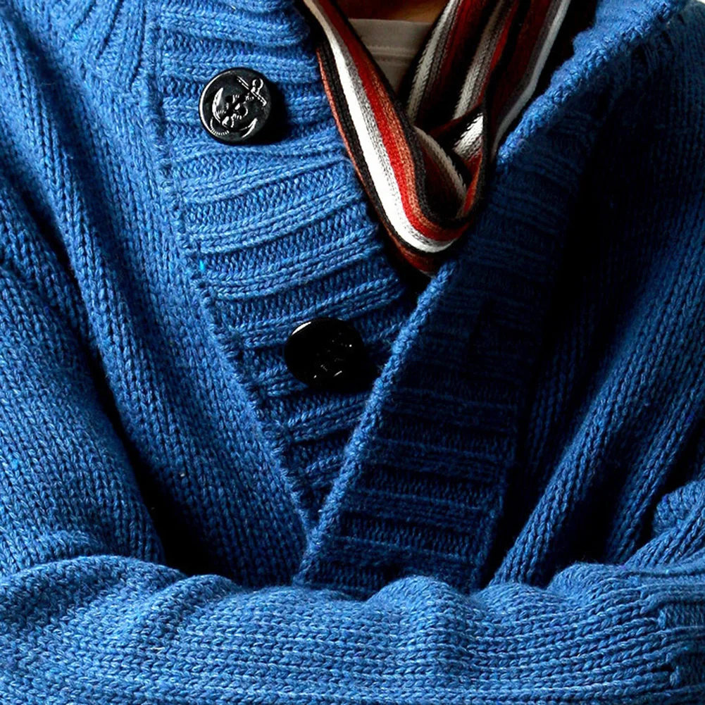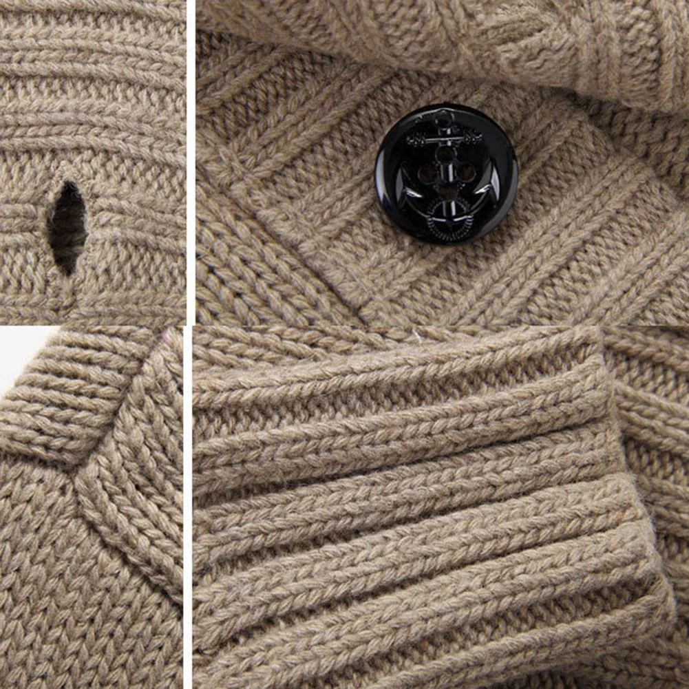 Мужской осенний вязаный свитер на пуговицах с воротником-стойкой и карманами; Утолщенное теплое пальто