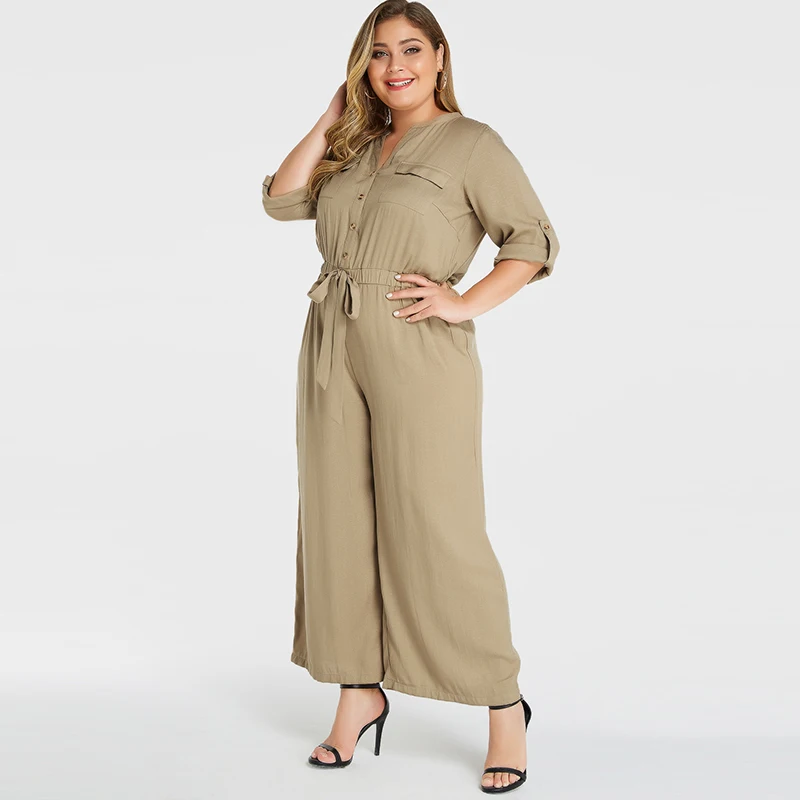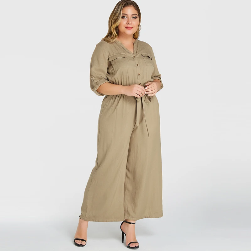 Летний комбинезон с широкими штанинами Женский однотонный Свободный Длинный