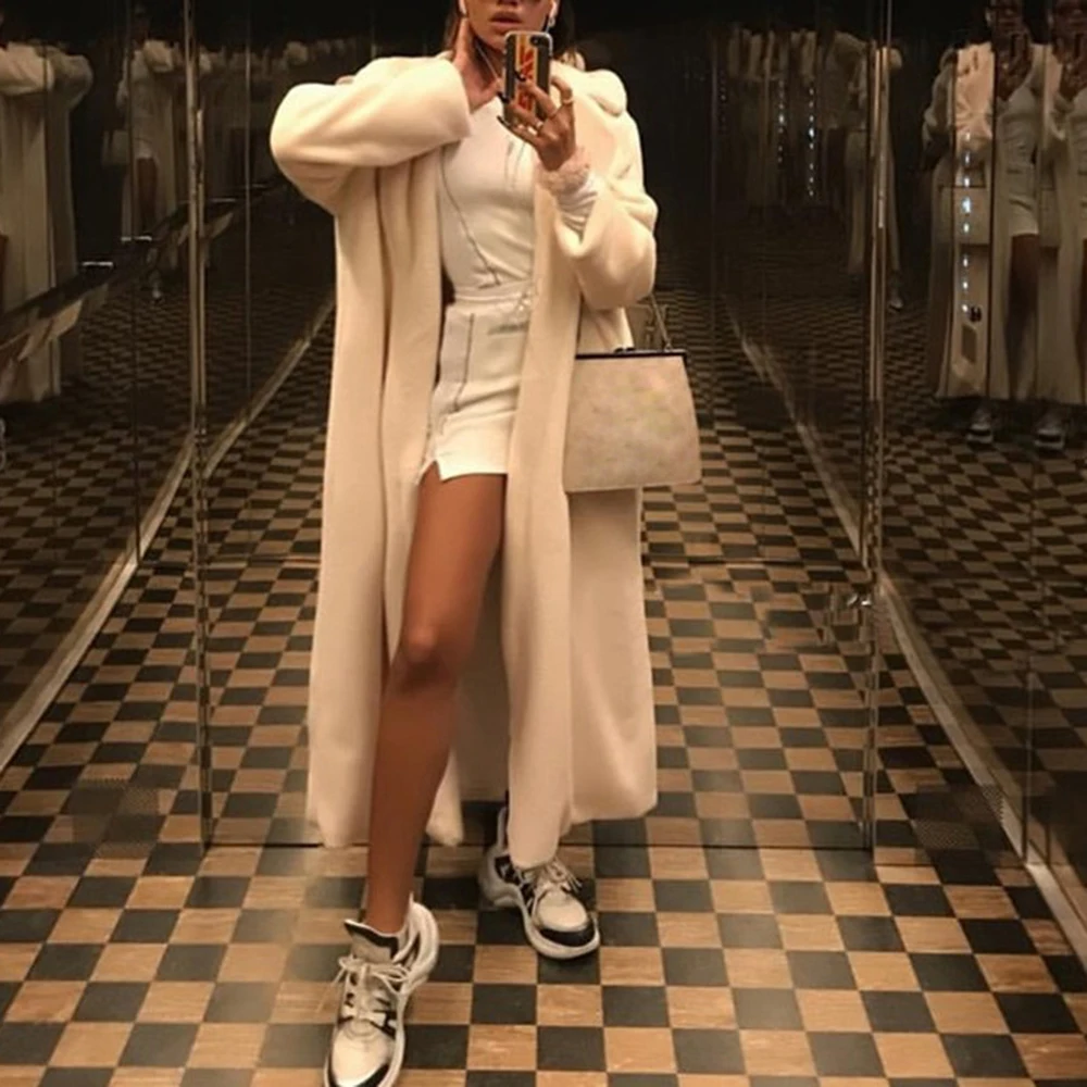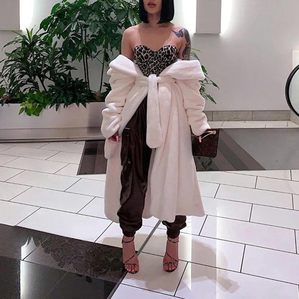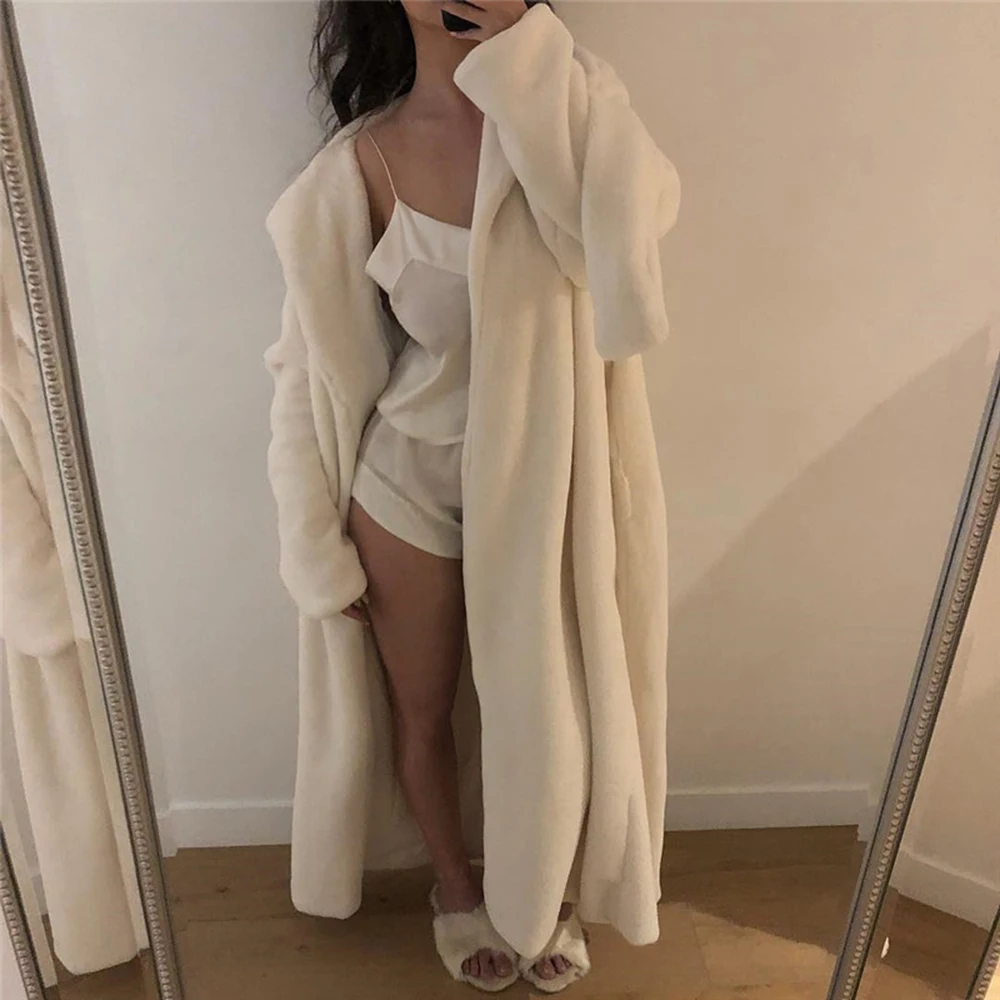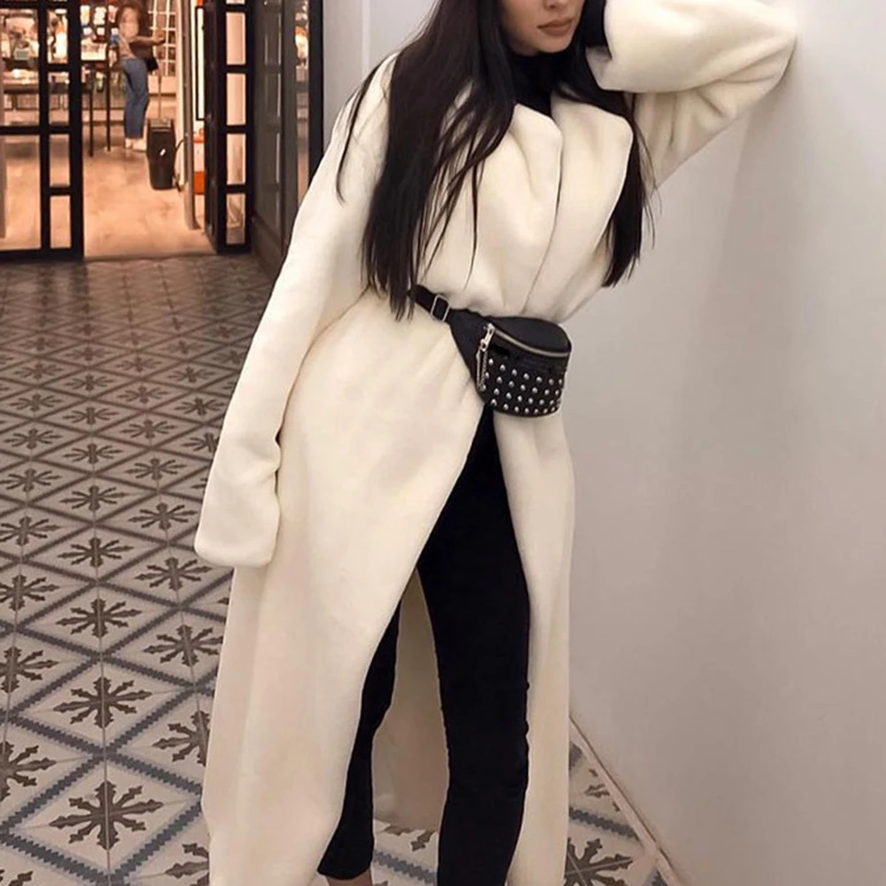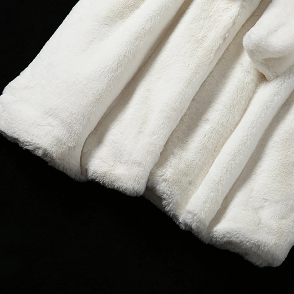 Зимнее пальто из искусственного кроличьего меха, женское роскошное белое длинное меховое пальто, Свободное пальто с отворотом, толстое теплое пальто, плюс размер, женские плюшевые парки, пальто
