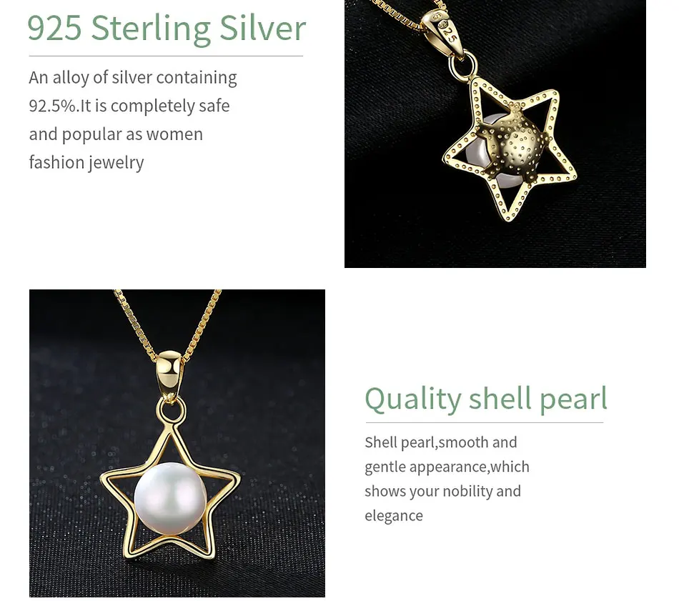 Набор украшений из пресноводного жемчуга, серебро 925 пробы, серьги-гвоздики со звездой, ожерелье, цепочки для женщин, рождественские подарки