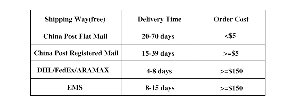 1. Мы отправляем все наши ИТ-ems по всему миру в течение 72 часов EMS/DHL или авиа-отправление Почты Китая/почтой Китая, способ доставки будет зависеть от общей стоимости