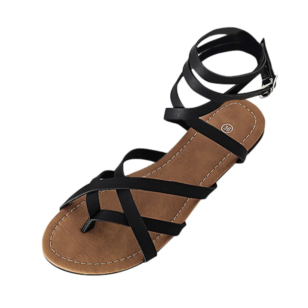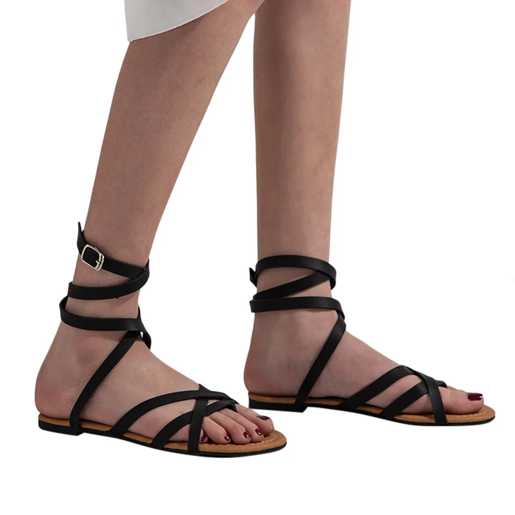 Женская модная дышащая обувь на плоской подошве; женские римские сандалии с открытым носком и пряжкой на ремешке