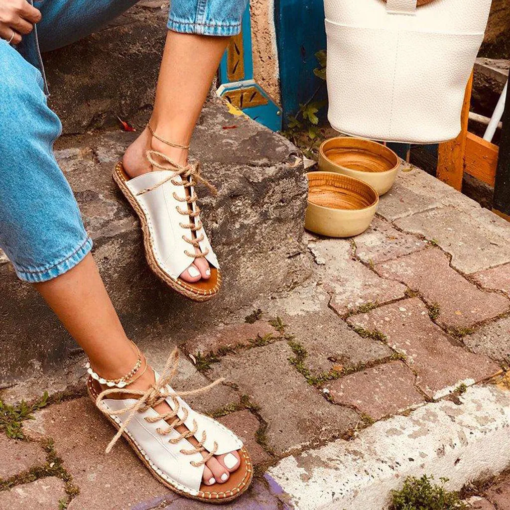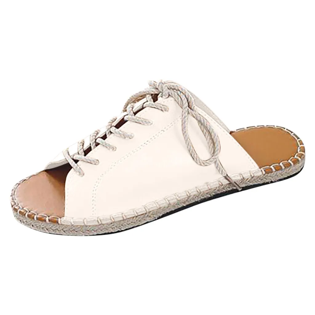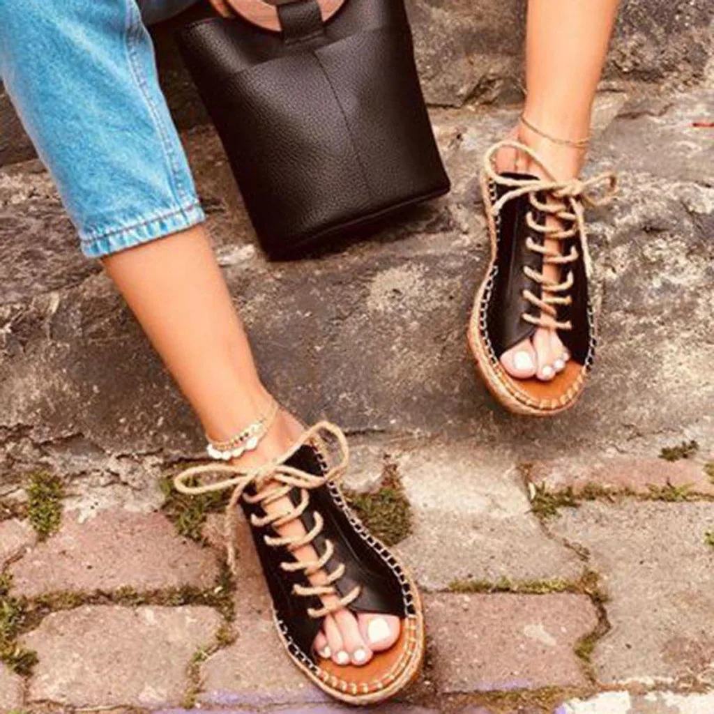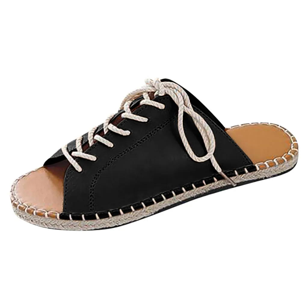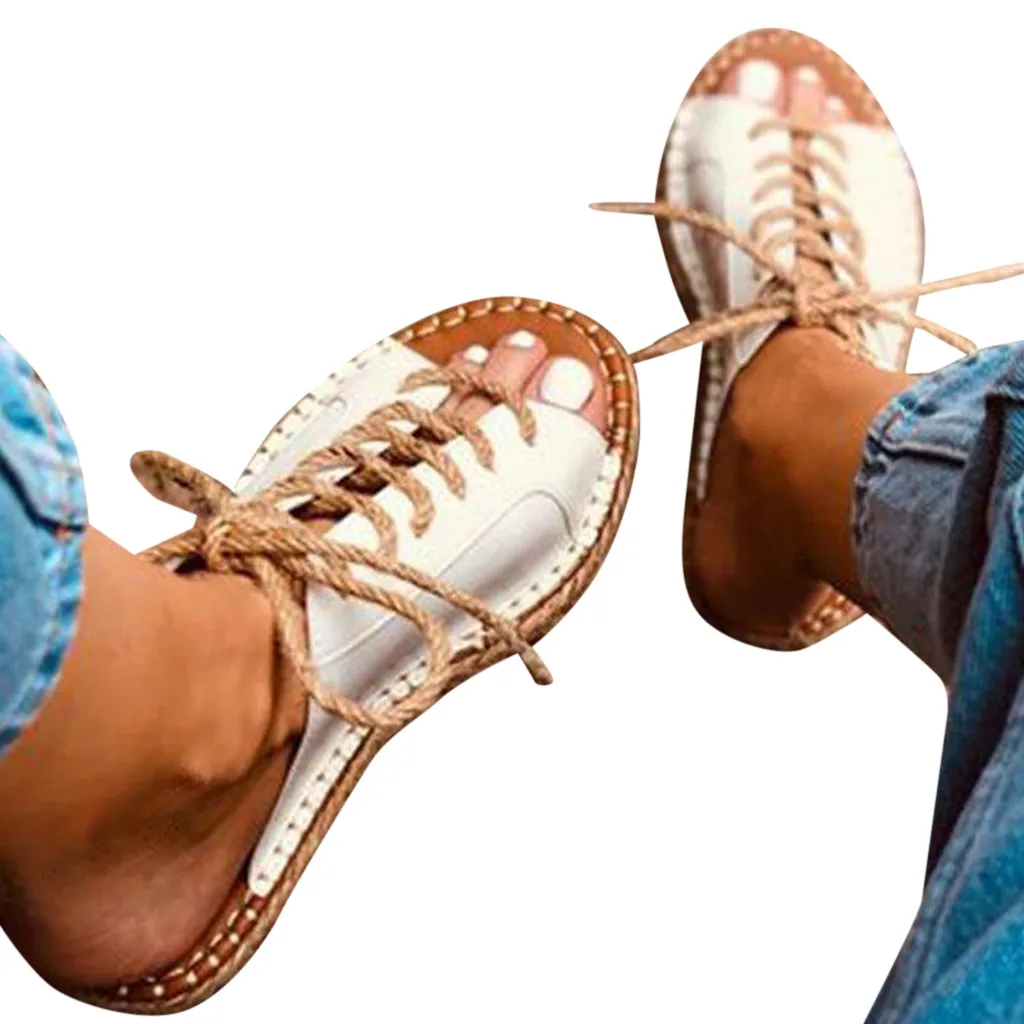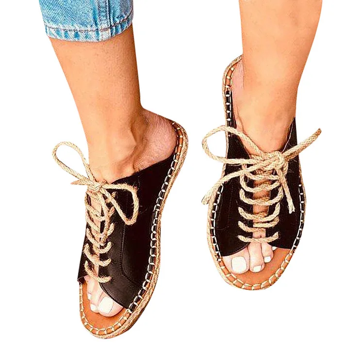 Женская обувь для отдыха в римском стиле; Большие размеры; Тапочки с открытым носком на шнуровке из пеньки; Босоножки
