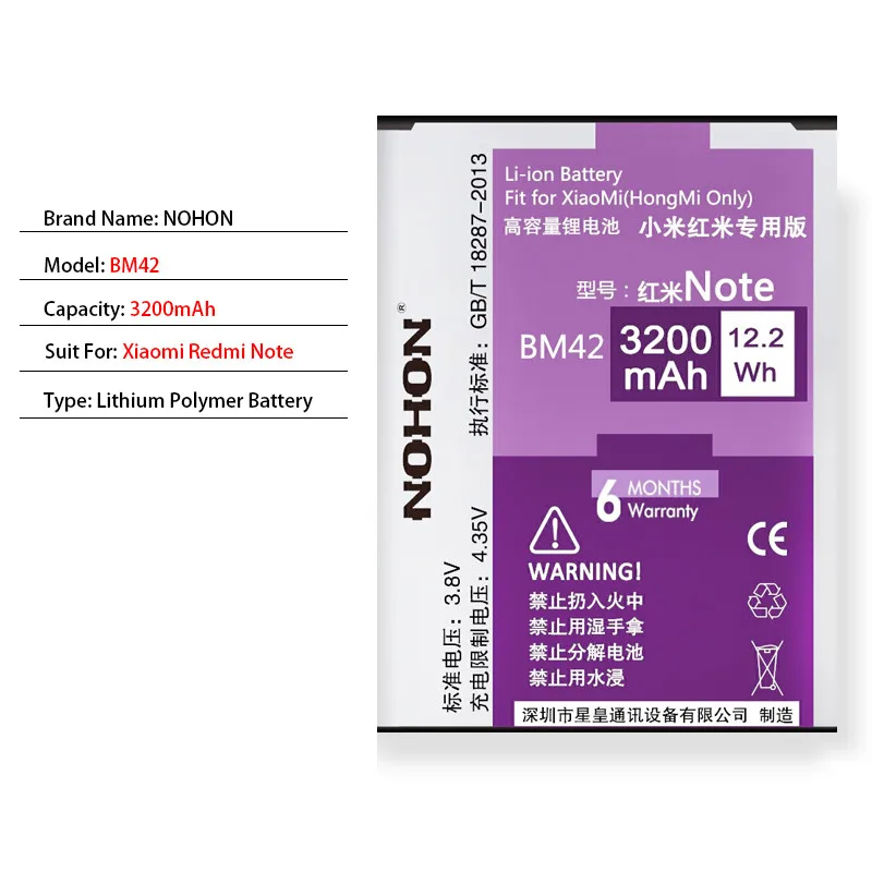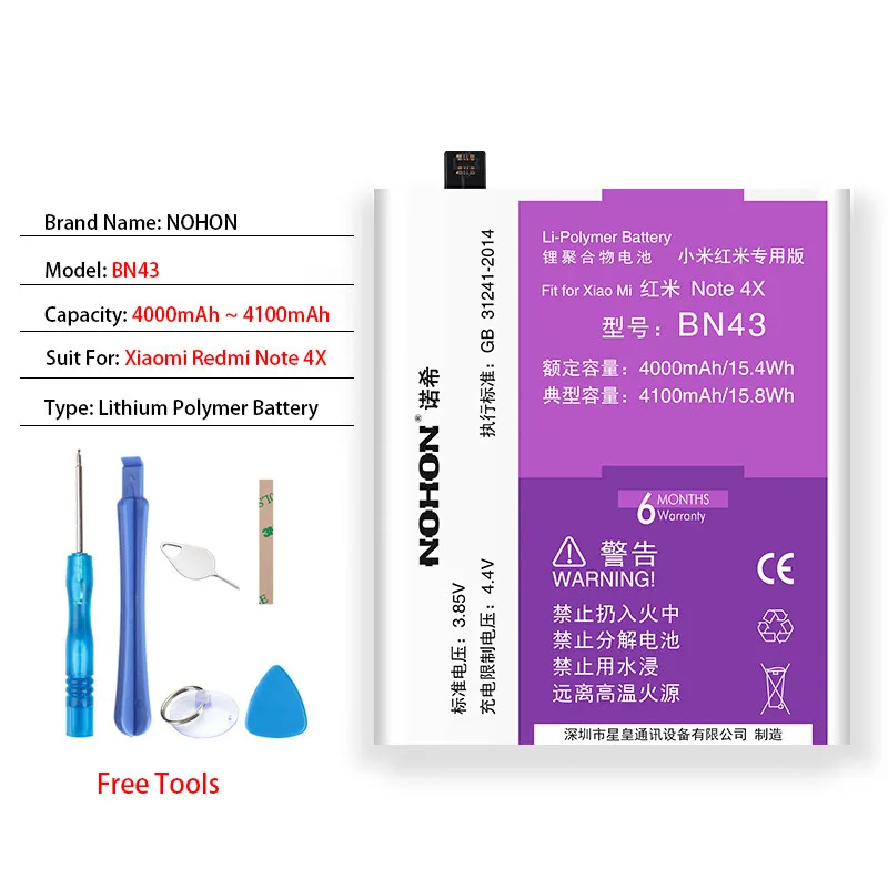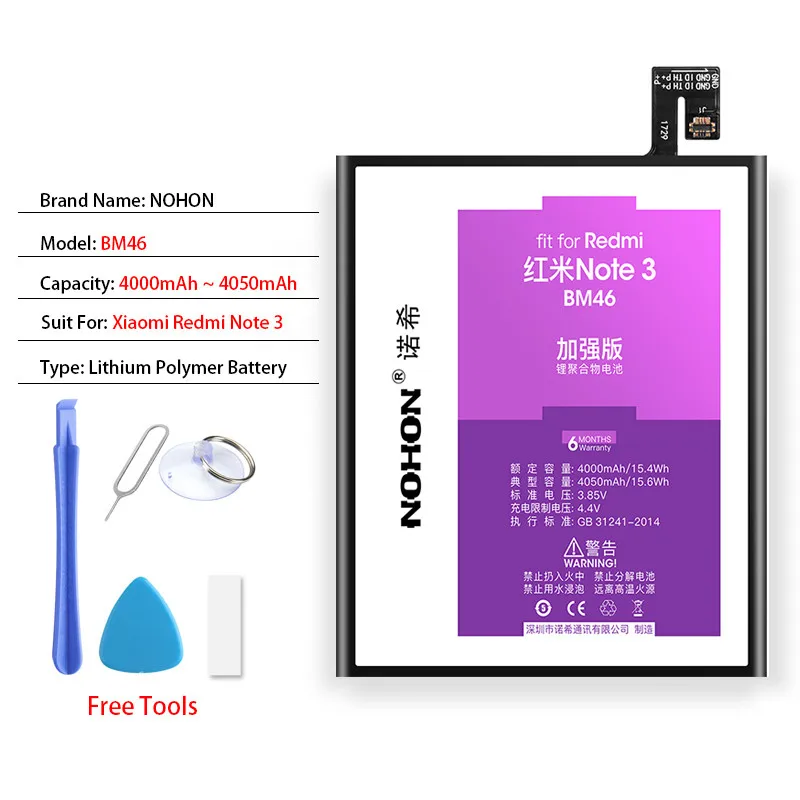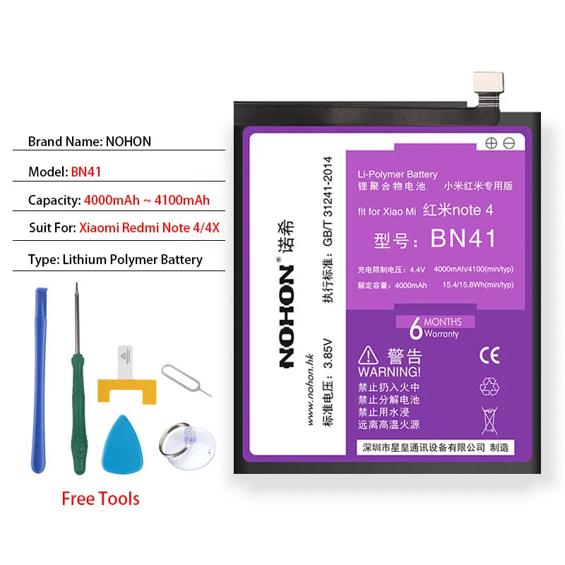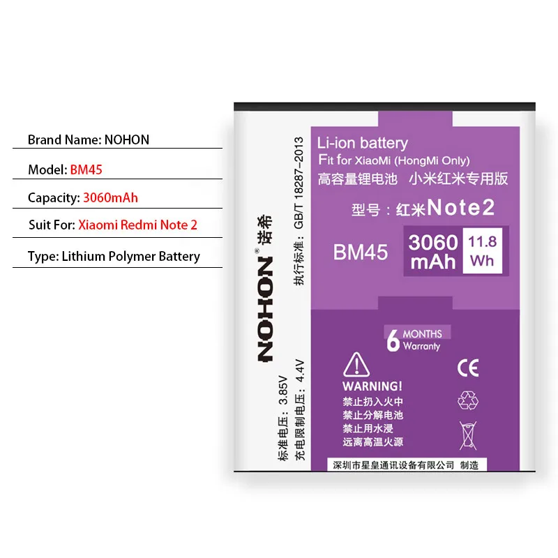 Оригинальный аккумулятор NOHON BM45 BM46 BN41 BN43 BN45 для Xiaomi