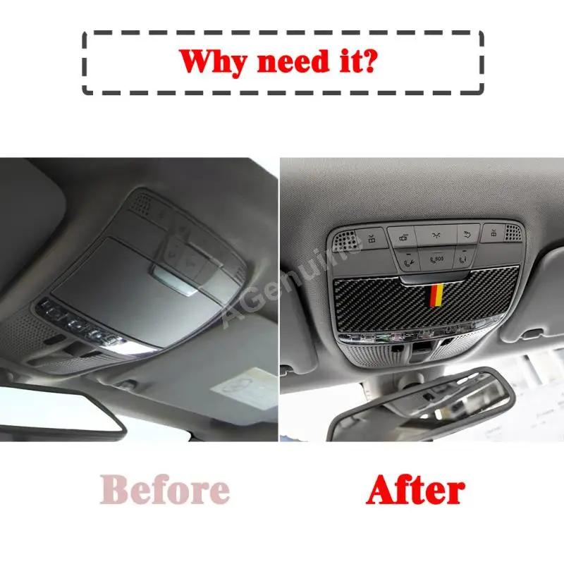 Чехол световая панель для чтения автомобиля из углеродного волокна, Накладка для автомобиля, наклейка для Mercedes C Class C180 C200 W205 GLC