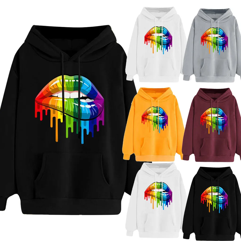 Для женщинСредства ухода за губамиПовседневный пуловер с длинными рукавами и принтом; Блузка