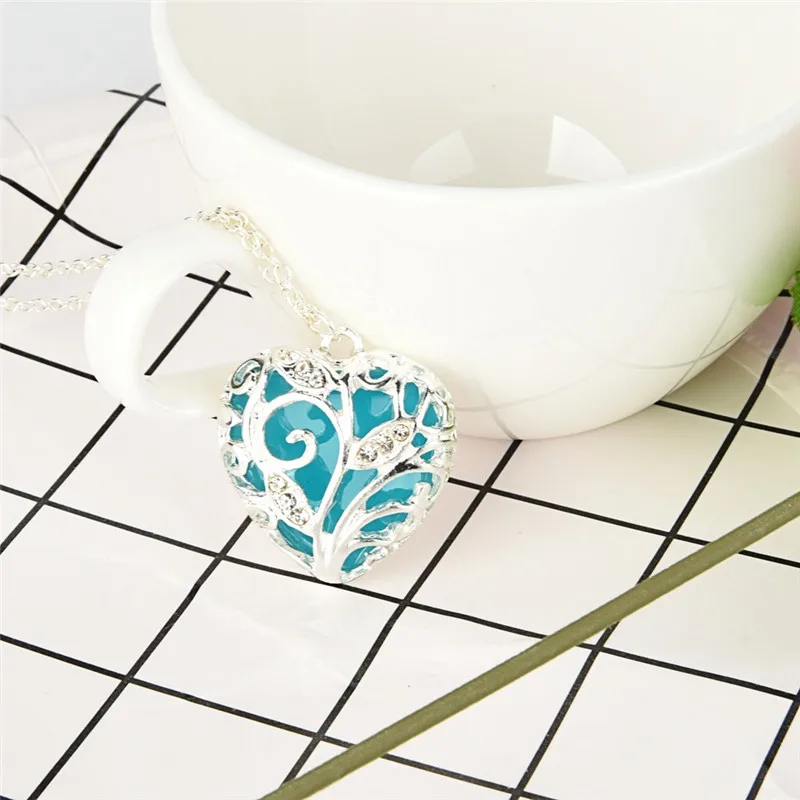 Волшебное голубое сердце, светится в темноте, ожерелье, подарок