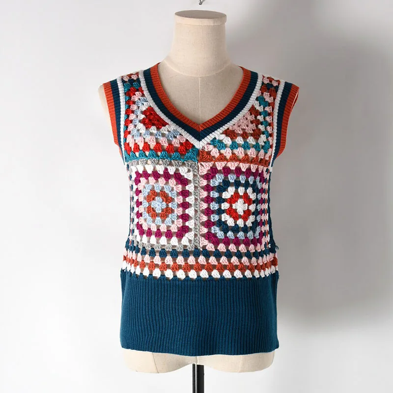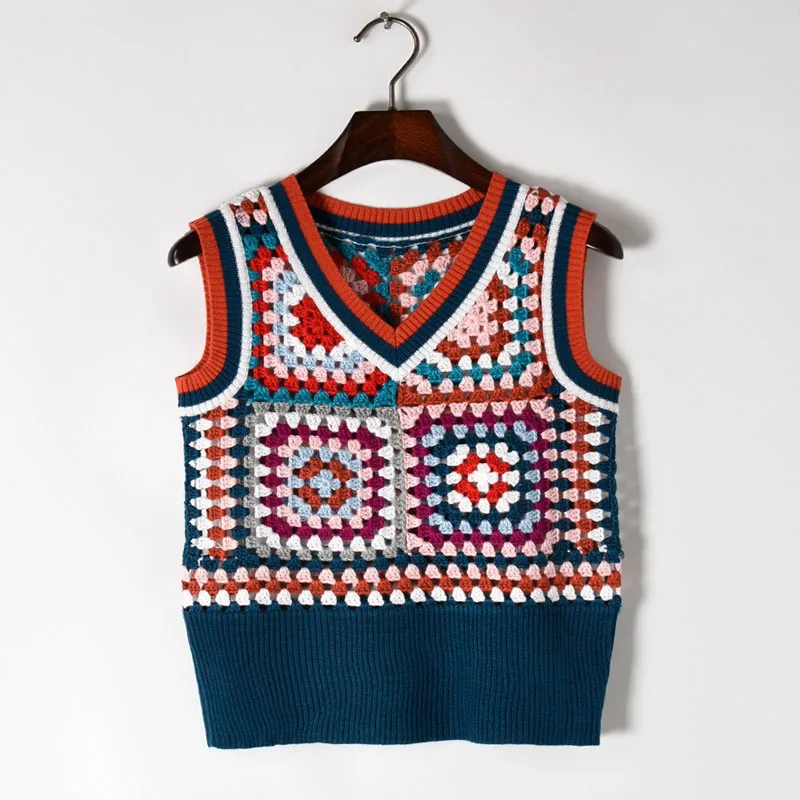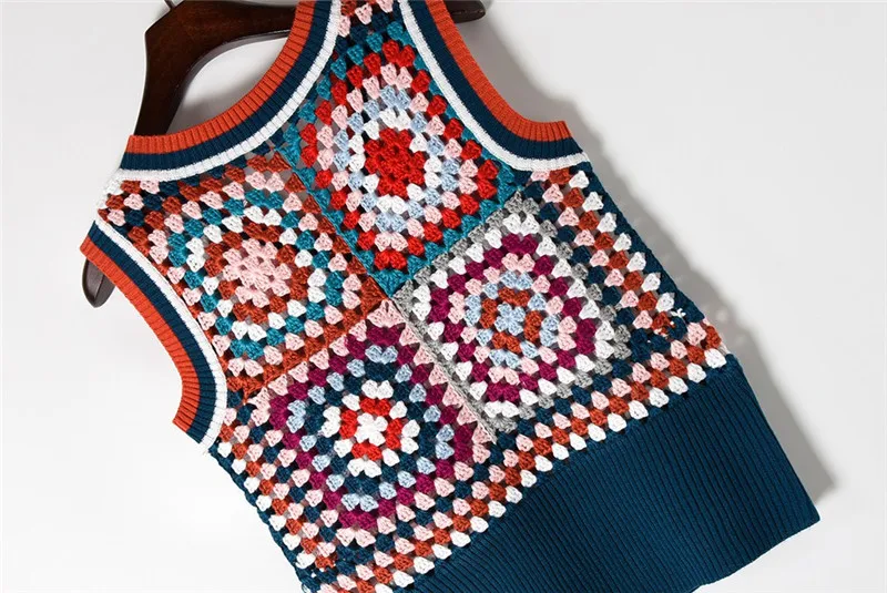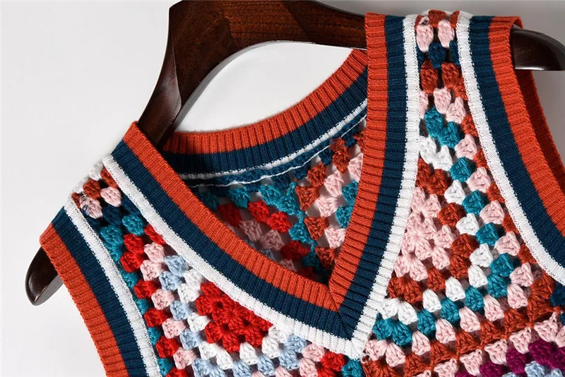 Высокое качество 2019 осень модные Универсальные цепной крюк выдалбливают хит Цвет вязаная жилетка в Корейском стиле Стиль женский шикарный с треугольным вырезом детская одежда