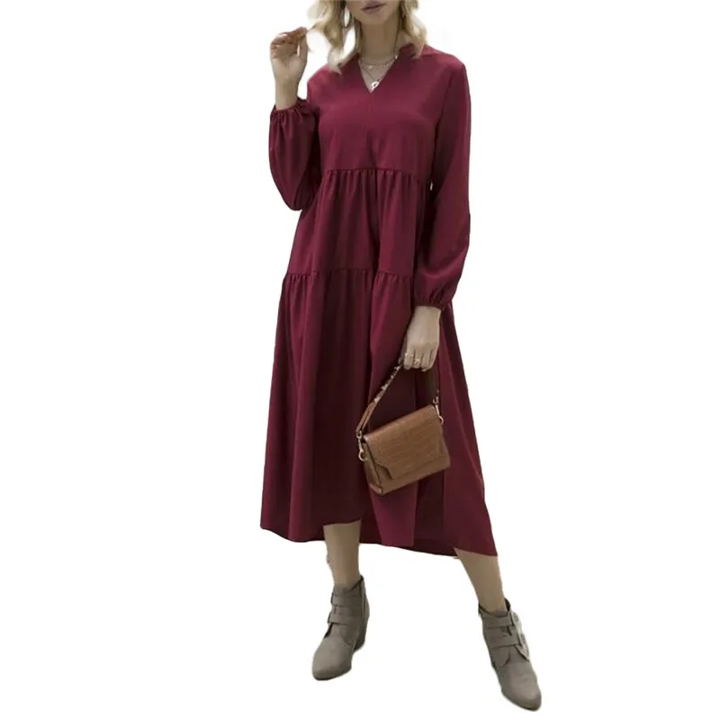 Женское длинное платье макси с длинным рукавом, осенне-весеннее сексуальное платье с v-образным вырезом, свободная мешковатая туника, топ в стиле ретро, платья с длинными рукавами, Vestidos!