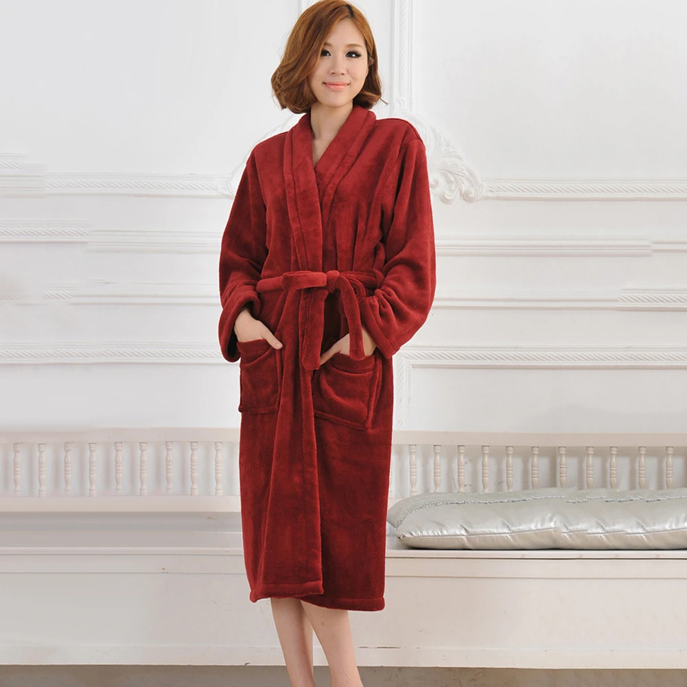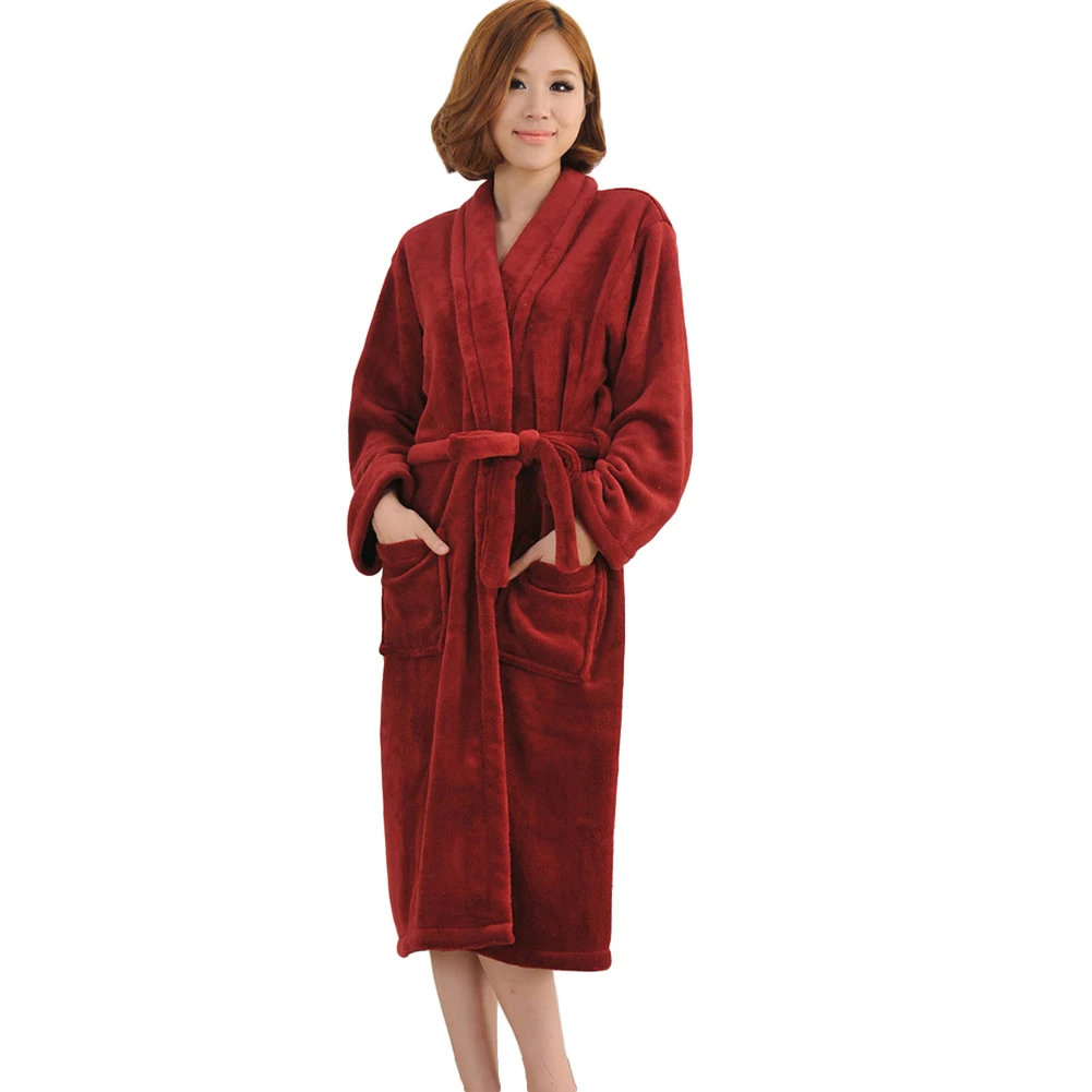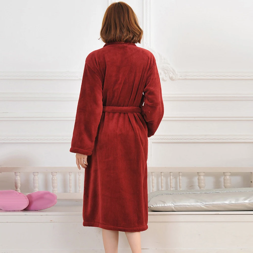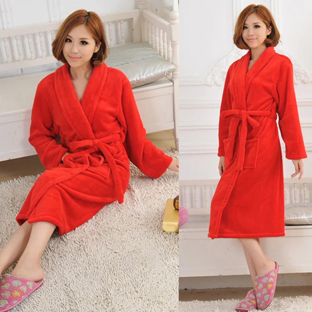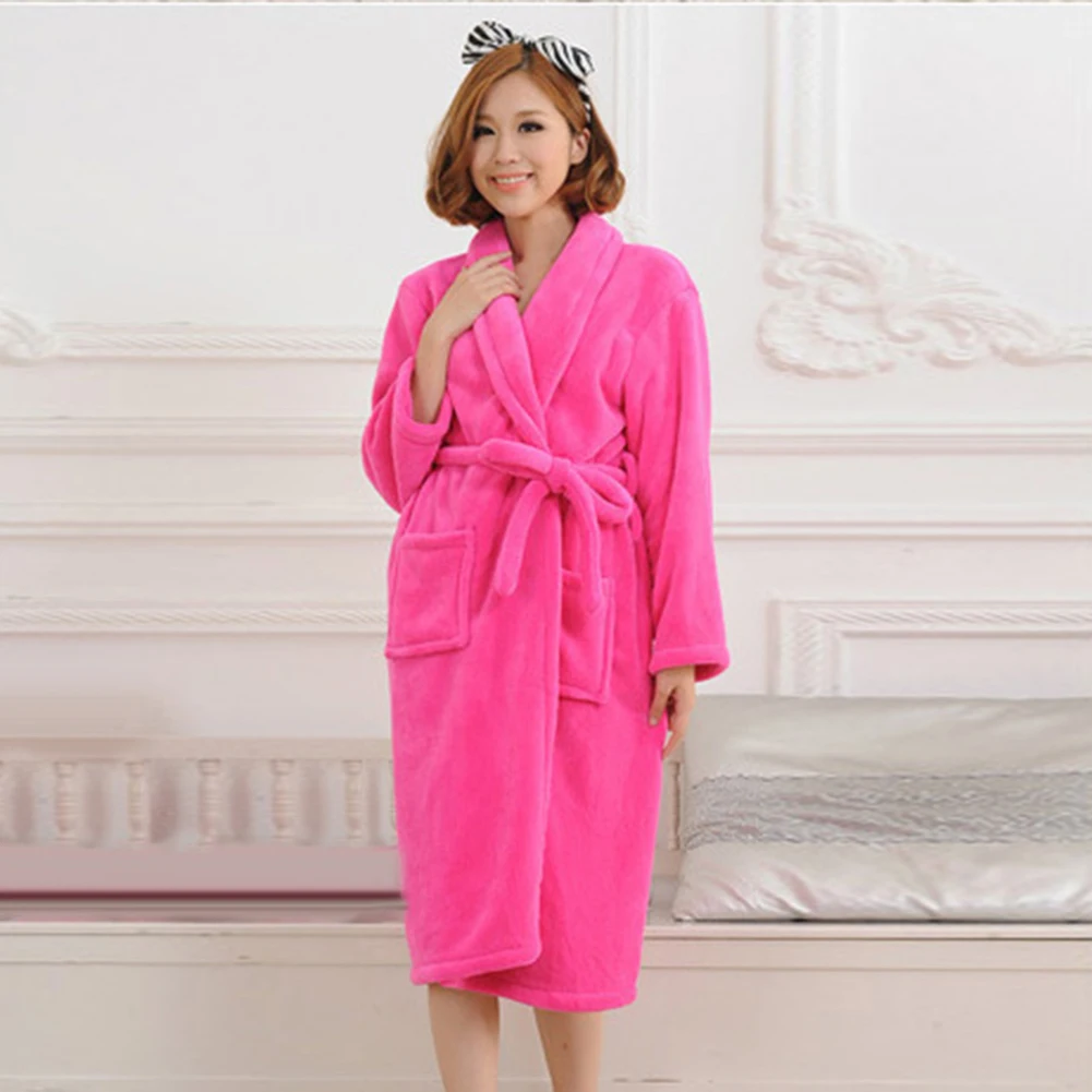 Женский осенне-зимний однотонный банный халат из плотного флиса кораллового цвета с поясом на талии, одежда для сна