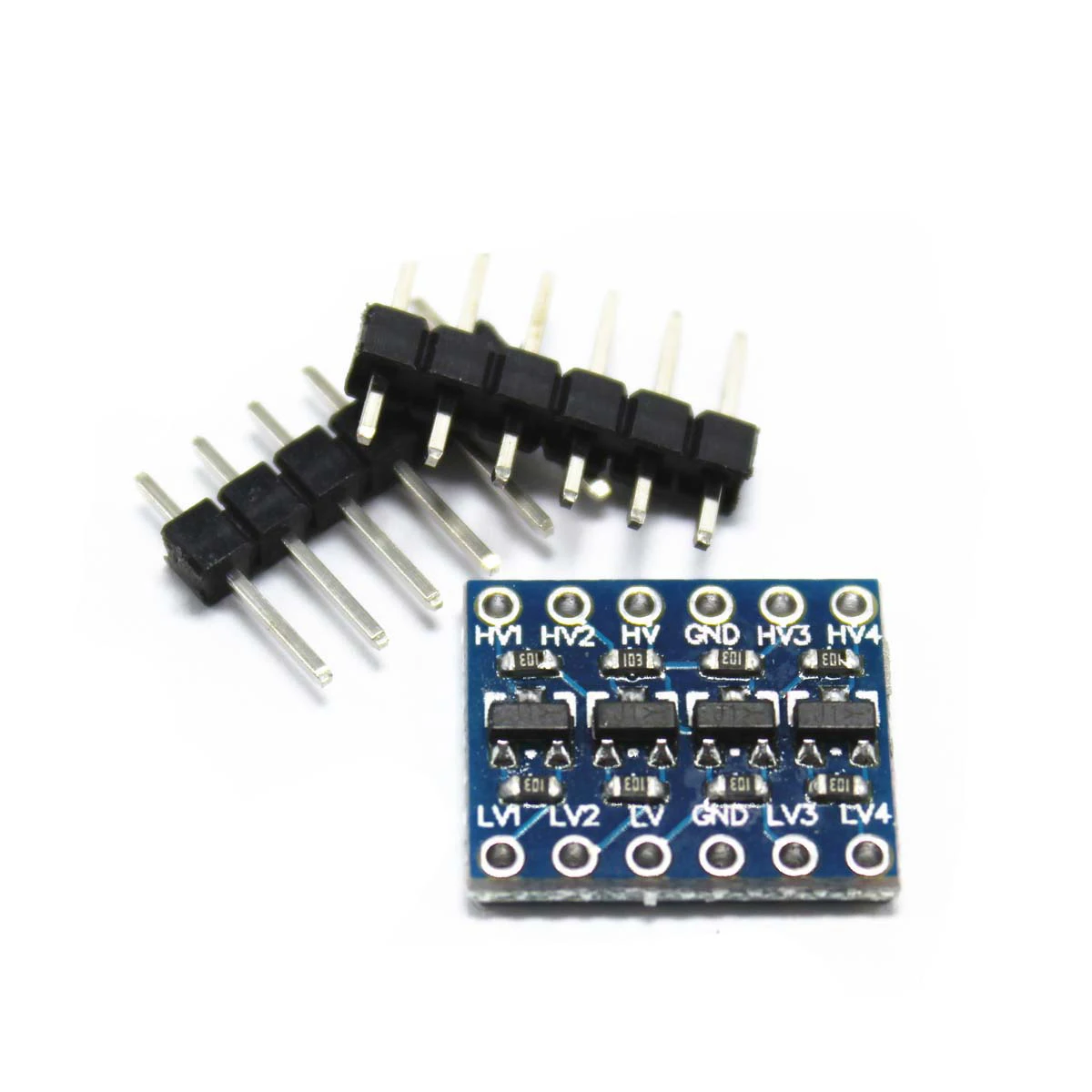 Преобразователь уровня очень прост в использовании. Плата должна питаться от двух источников напряжения (Высокое напряжение и низкое напряжение), которые использует ваша система. Высокое напряжение (5V к примеру) на HV' булавки, защита от низкого напряжения (3,3 V к примеру) для LV' и землю с системы GND' pin-код.