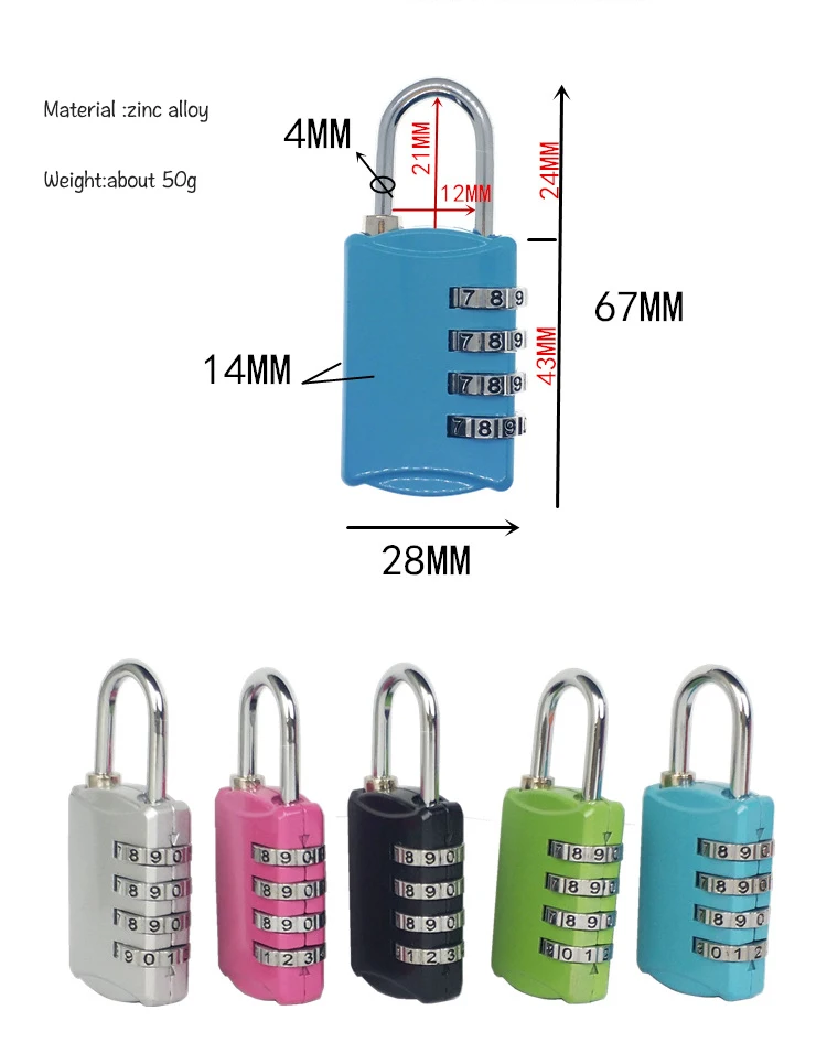 Металлический 4 набора цифр Пароль Замок Комбинация чемодан Чемодан кодовый замок с паролем замок