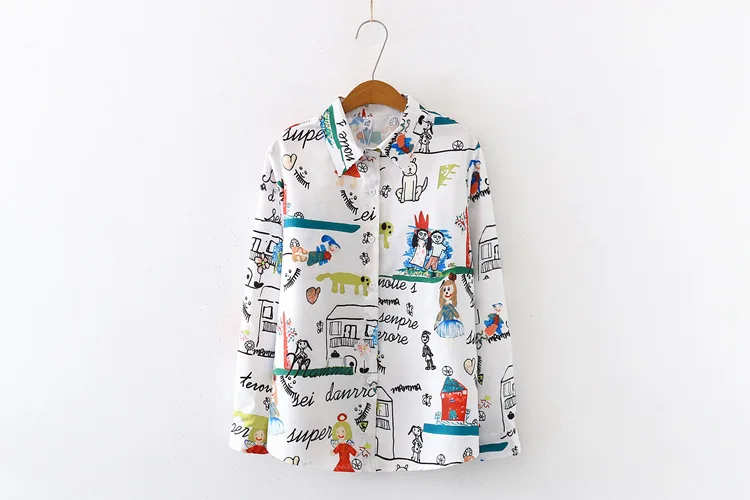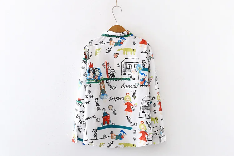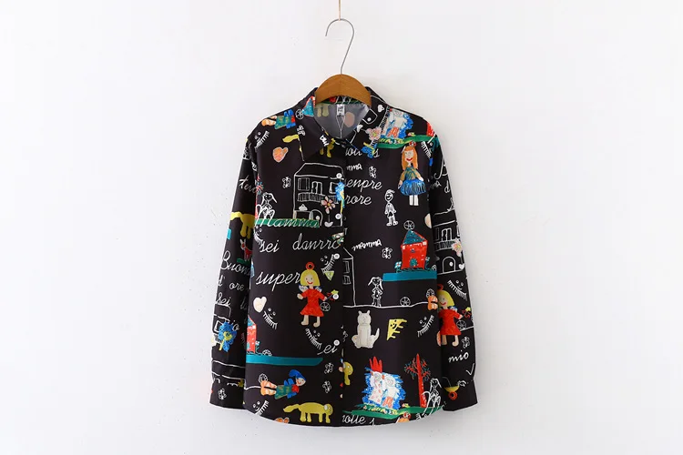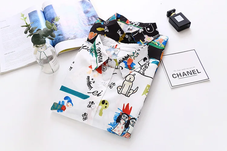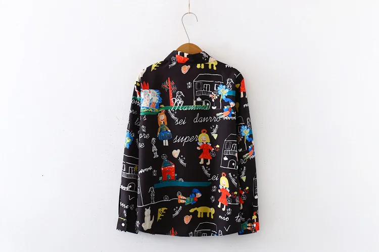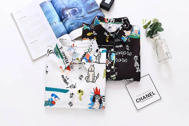 Vefadisa/2020 Весенняя женская тонкая блузка с отворотом и мультяшным принтом