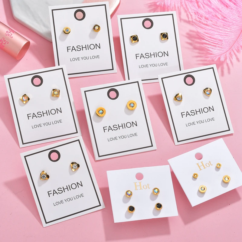Женские Геометрические серьги гвоздики с квадратным крестом медные кристаллом