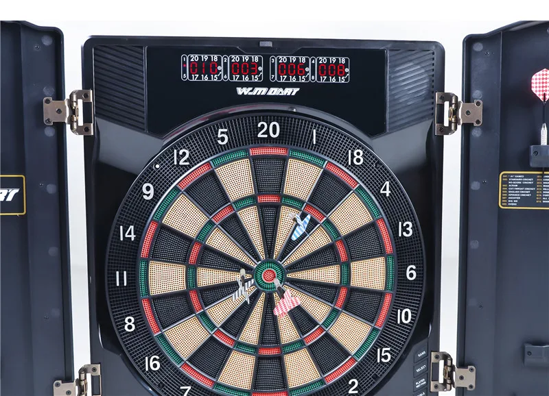 Размер продукта: 51x6.2x59.6 см Функция: 4 Светодиодный дисплей для электронного зачета И "888 тип" крикет системы забивания. Подходит для 1-16 игроков. 27 захватывающих игр с 259 играми Вариации для игроков всех возрастов. Функция памяти/громкость звука Системы управления/блокировки ключей Играйте с компьютером в 4 уровнях: Профессиональный/продвинутый/промежуточный/ Новичок. Аксессуары: 12 шт. мягкие Дартс с 4 типами Полетов (12 встроенных держателей Дротика Заключено). Дополнительные 52 подсказки для запасных Качественный адаптер (110v-240v/500mA