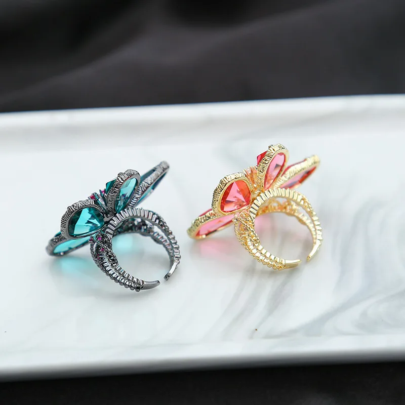 Fashion Tree Branch Anel Crystal Ring Bridal Wedding Rings for Women 925 Silver Filled Jewelry Green CZ Stone Engagement | Украшения и