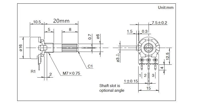 1 шт. RK163 3Pin ALPS 16 Тип потенциометра один блок 10Кб 50кб 100кб аудио усилитель громкости поворотный потенциометр B10K B50K B100K