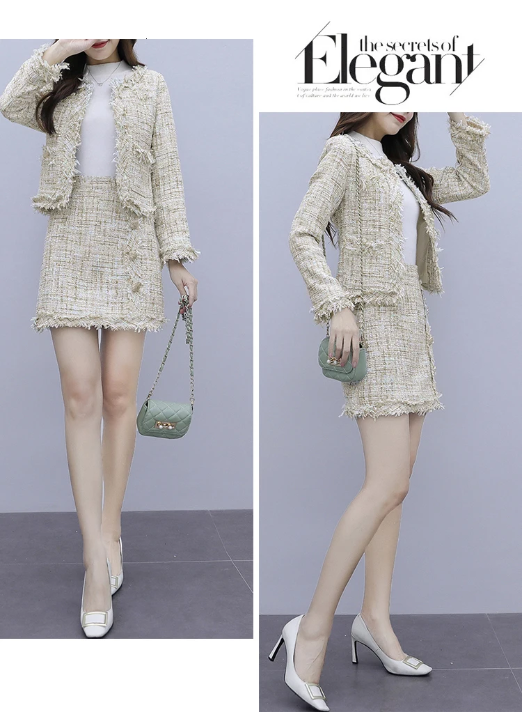Шерстяная твидовая осенне-зимняя одежда Женский комплект 2 шт. спортивные