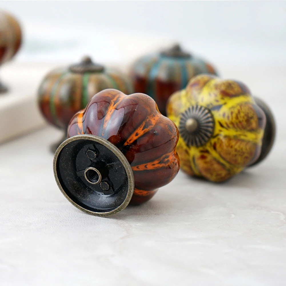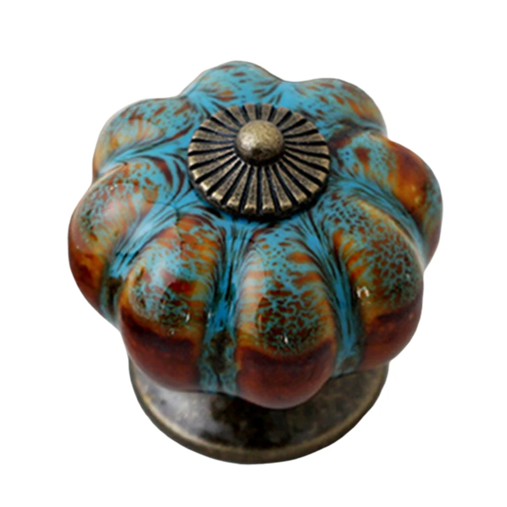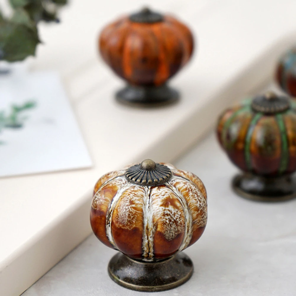 Retro Round Pumpkin Shape Ceramic Drawer Cabinet Wardrobe Door Handle Knob Decor