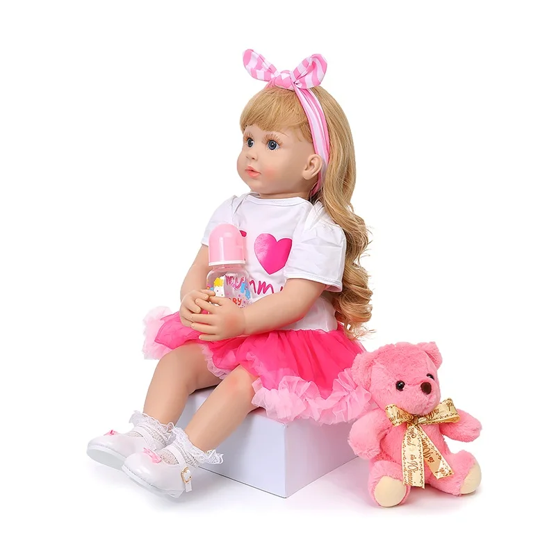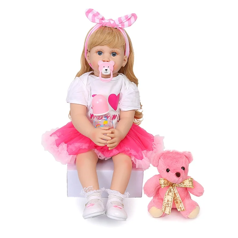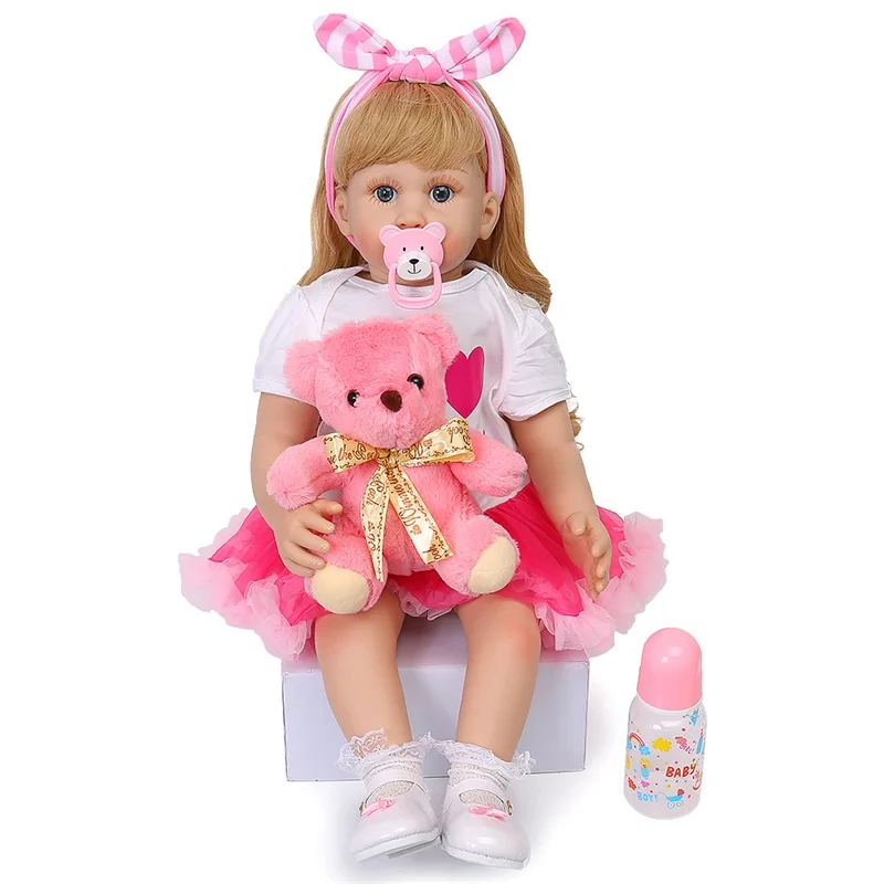 Элегантные куклы Reborn Baby 58 см мягкие виниловые модные розовые силиконовые куклы принцессы с длинными кудрями золотые волосы для рождественского подарка