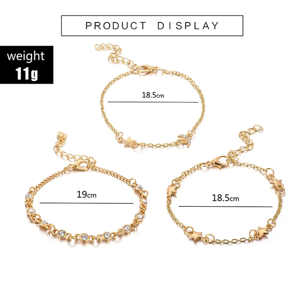 Женский модный браслет, хит продаж, простой, изысканный, звездная луна, комбинация, 3 шт, браслет, ювелирное изделие, праздничный подарок, подарок #40