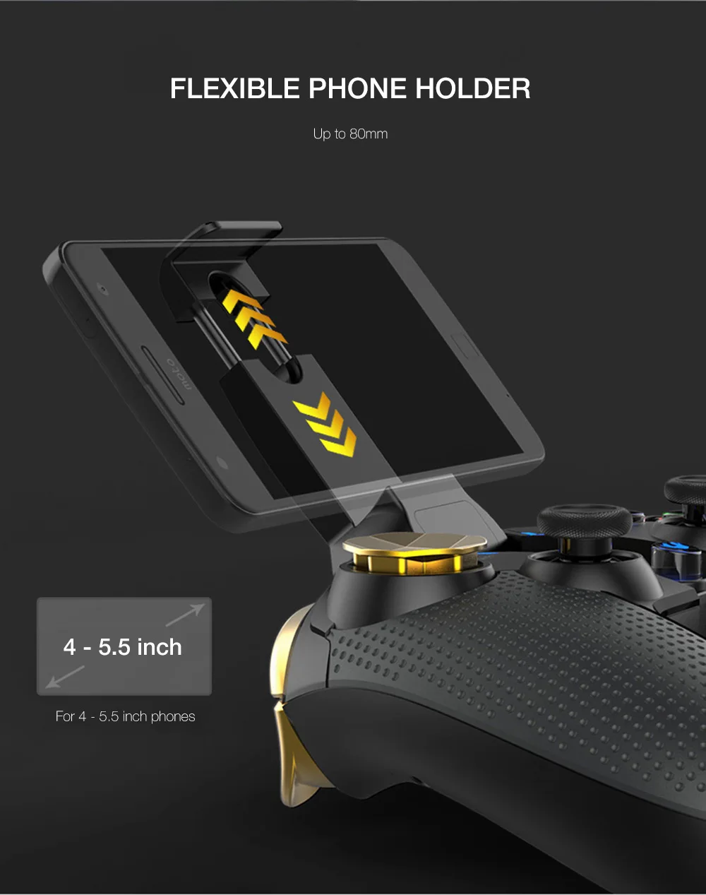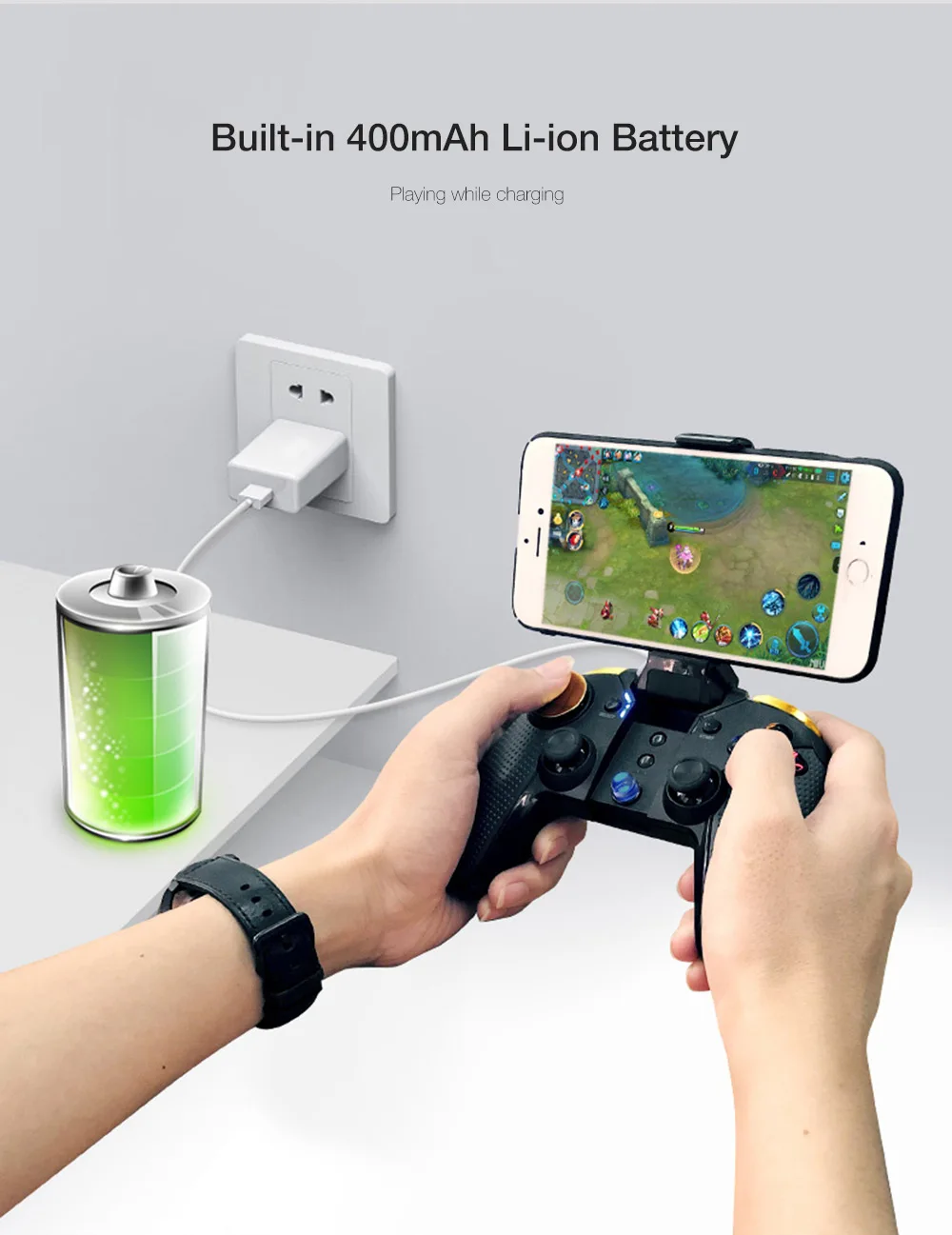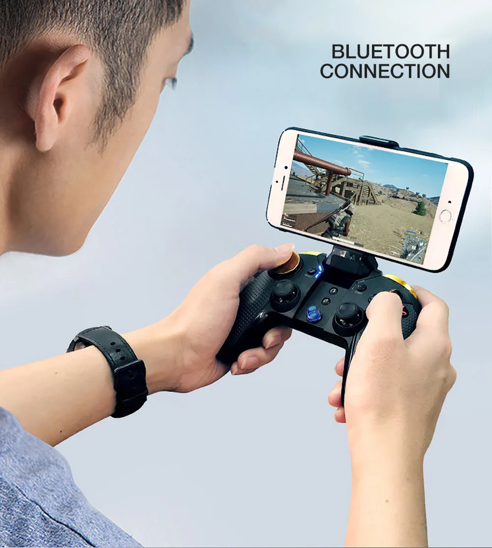 Основные Особенности: -Мульти-Платформа: совместима с iOS, Android -Беспроводное подключение: подключайте Bluetooth и играйте, не нужно загружать игры с третьей вечерние платформы приложений -Широкая совместимость: совместимость с большинством игр на рынке -Триггер джойстик: быстро и легко управлять игрой -Эргономичная ручка: защита от пота и против скольжения -Долгая Продолжительность: Встроенный высококачественный литий-ионный аккумулятор 400 мАч, поддержка воспроизведения во время зарядки -Гибкий держатель для телефона: для 4-5,5 дюймовых телефонов Технические характеристики: -Рабочее напряжение: DC 3,7 в -Рабочий ток: 30 мА -Ток в режиме ожидания: менее 35uA -Зарядное напряжение/ток: 5 В/500 мА постоянного тока -Аккумулятор: литий-ионный аккумулятор 400 мАч (встроенный) -Время использования: 10 ч и более -Время в режиме ожидания: более 30 дней