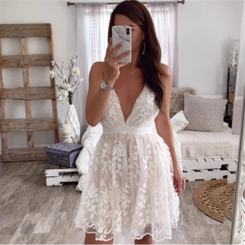 Богемное женское платье с вышивкой винтажное ажурное кружевное короткими