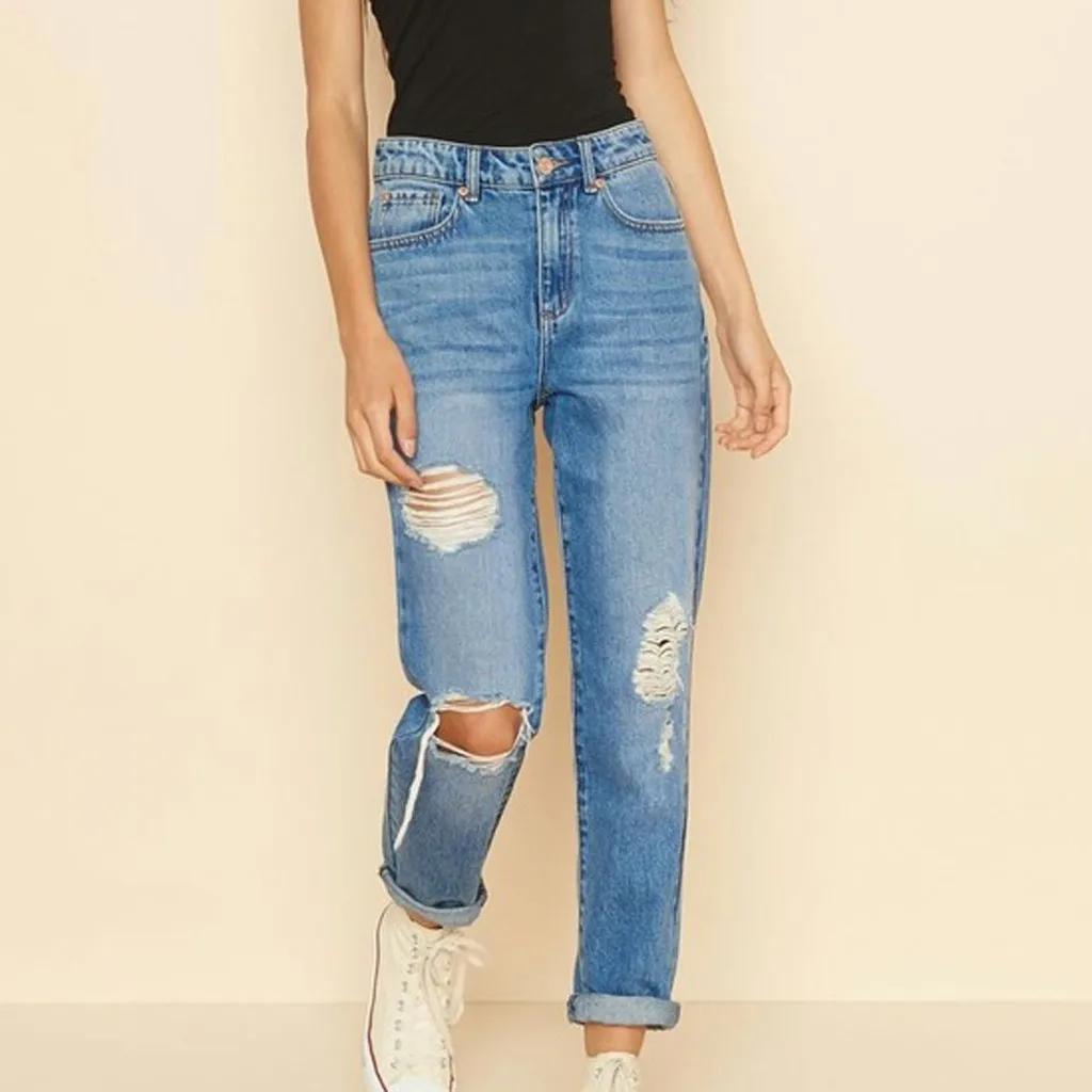 1. Особенности:Джинсовая тканьБрюки для девочек,Высокая талия, отверстие, карман, пуговицаНа молнии, повседневная, приталенная, трендовая и