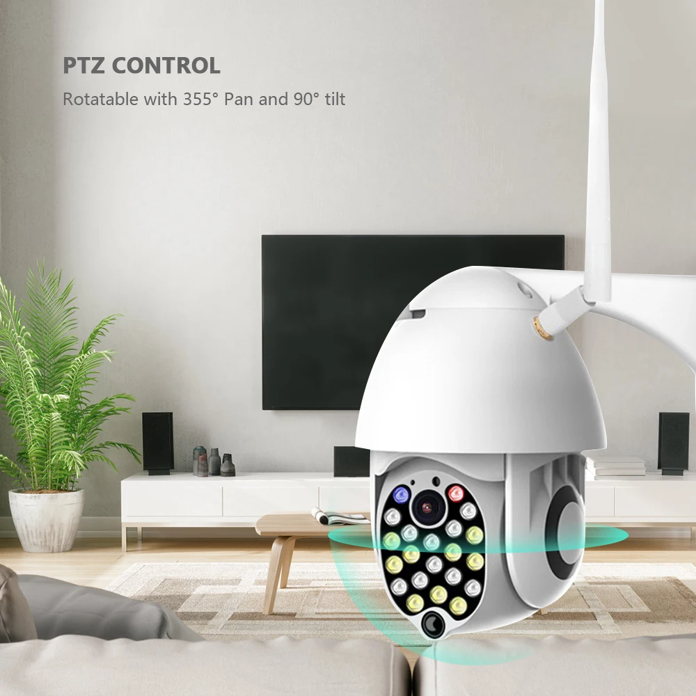 -Управление PTZ: может вращаться на 320 градусов по горизонтали и вращаться на 90 градусов по вертикали. Мобильный телефон может контролировать угол поворота Кардана и видеть направление, которое вы хотите видеть.