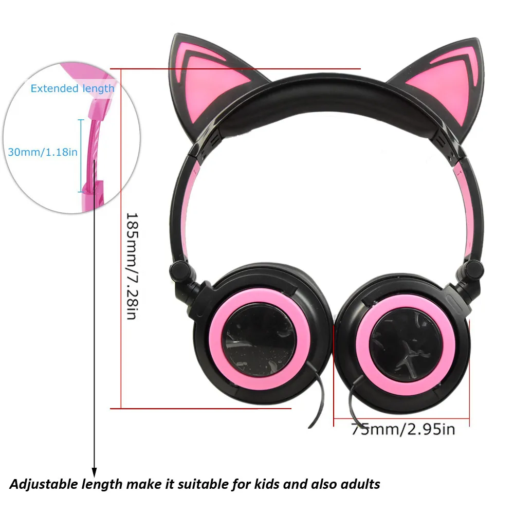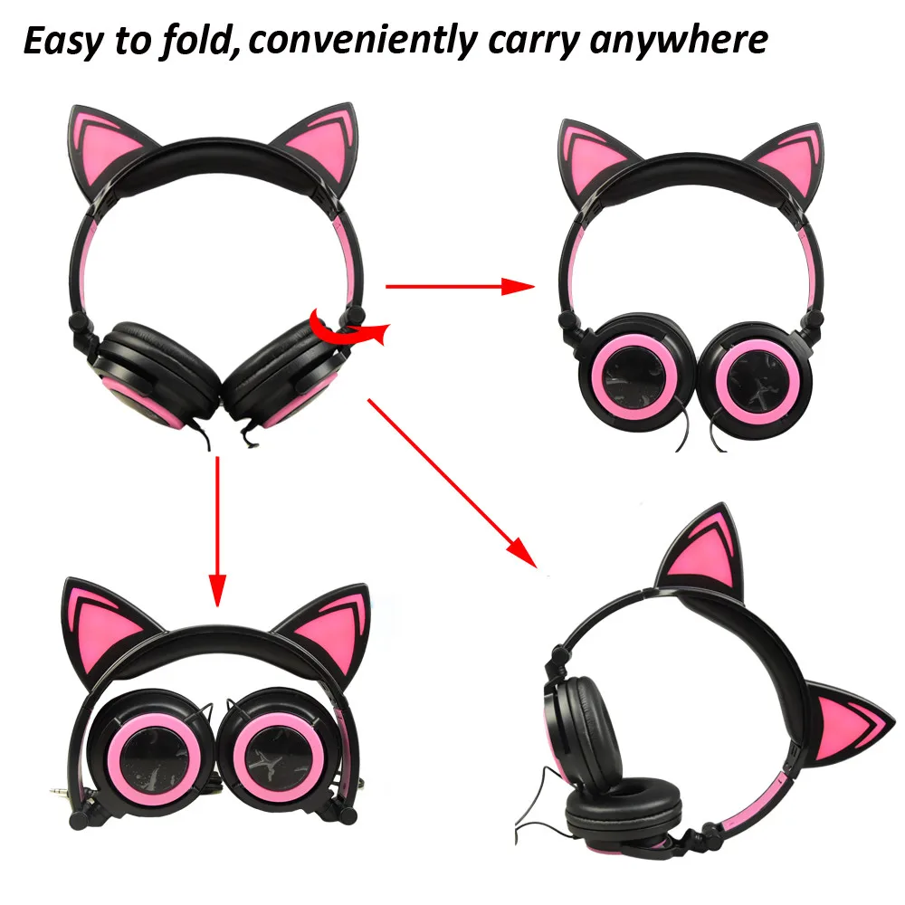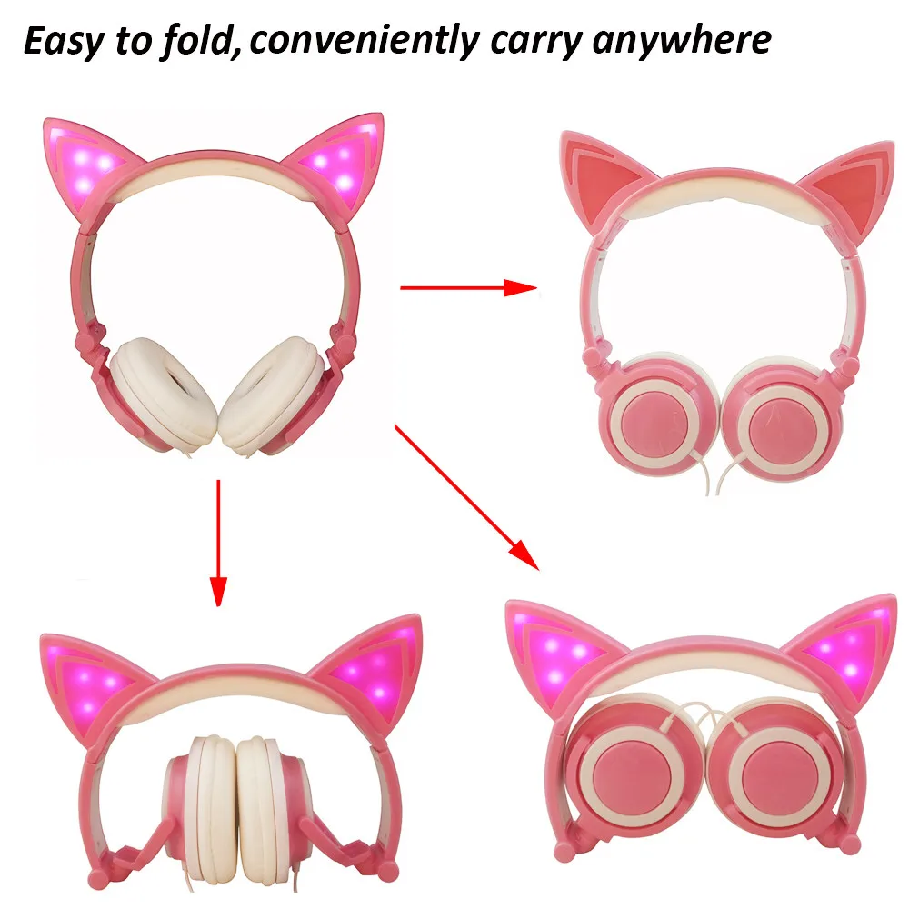 Складной кошачий ухо светодиодный музыкальный свет наушники гарнитура для ноутбука MP3