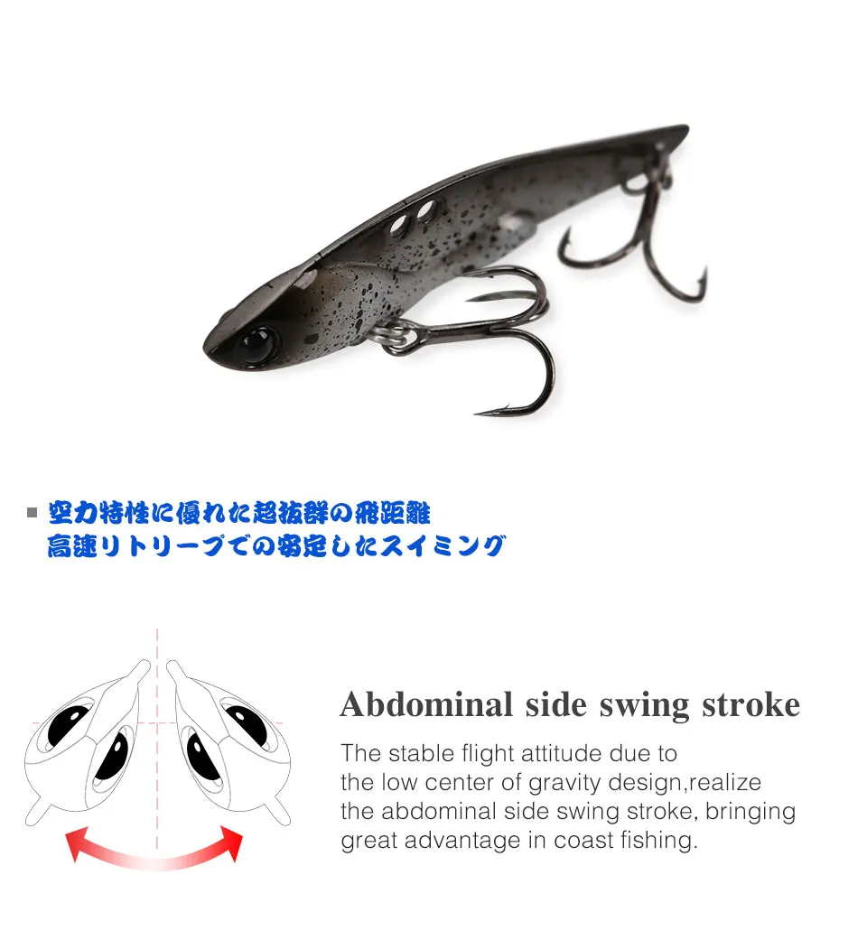 Product Features: Streamlined body featured stable action under water and long distance casting. Along the spine, the Bait is machined with two line ties, which provide different angles of pull to accommodate preference, condition, and technique. With a strong pull gourd shaped pin and corrosion resistance.Integrated molding, strong pull, anti hanging line design, hard to hurt the line, for the big fish. The setting of the hook up firmly is given to the mouth of the bait, it will become existence which can not be released this winter Product Details: Type:Metal VIB Hard Lure Colors:8 colors Weight:7g Length:50mm Diving Depth:Full Swimming Layer Hook: High Quality Durable Hooks Package: Individual Box Packaging.