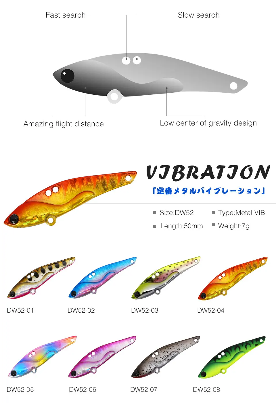 TSURINOYA Fishing Lure VIB Metal Swimbait DW52 50mm 7g Sinking Vibration Metal Hard Fishing Lure Bait Spoon Winter Jig Lure