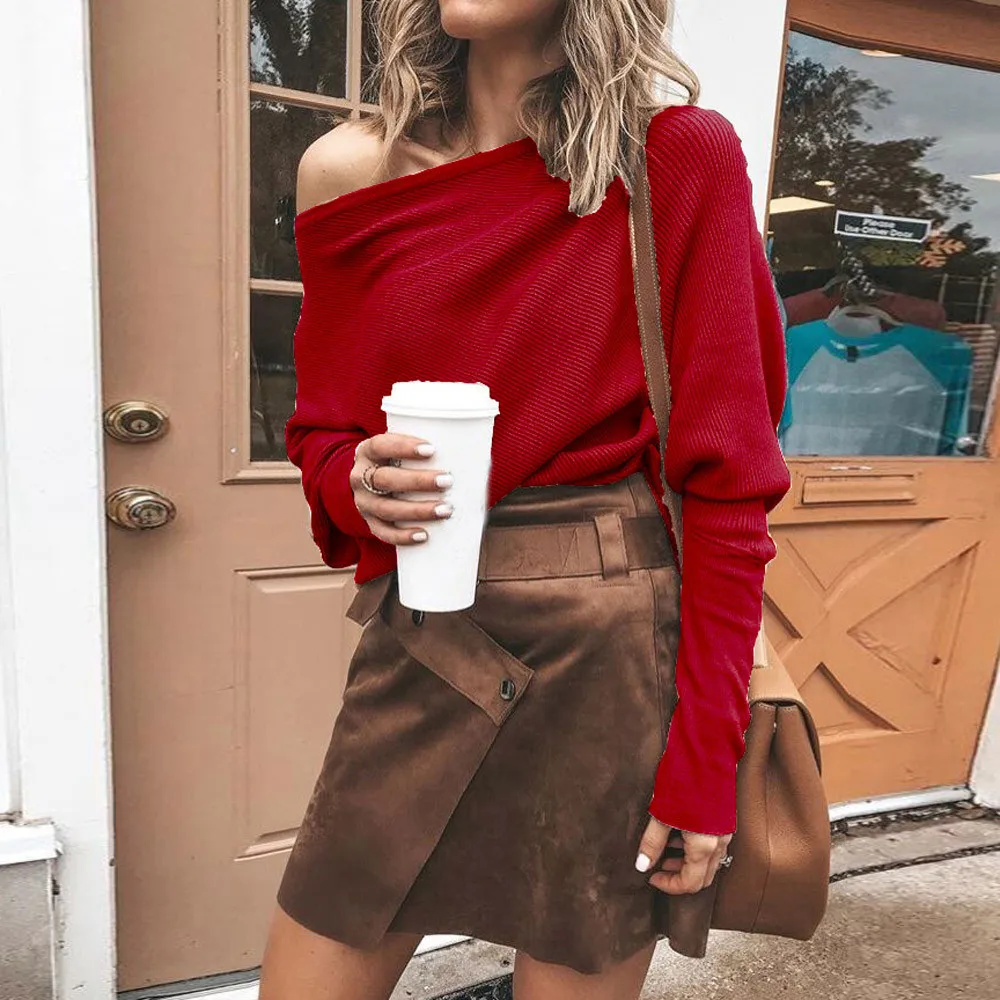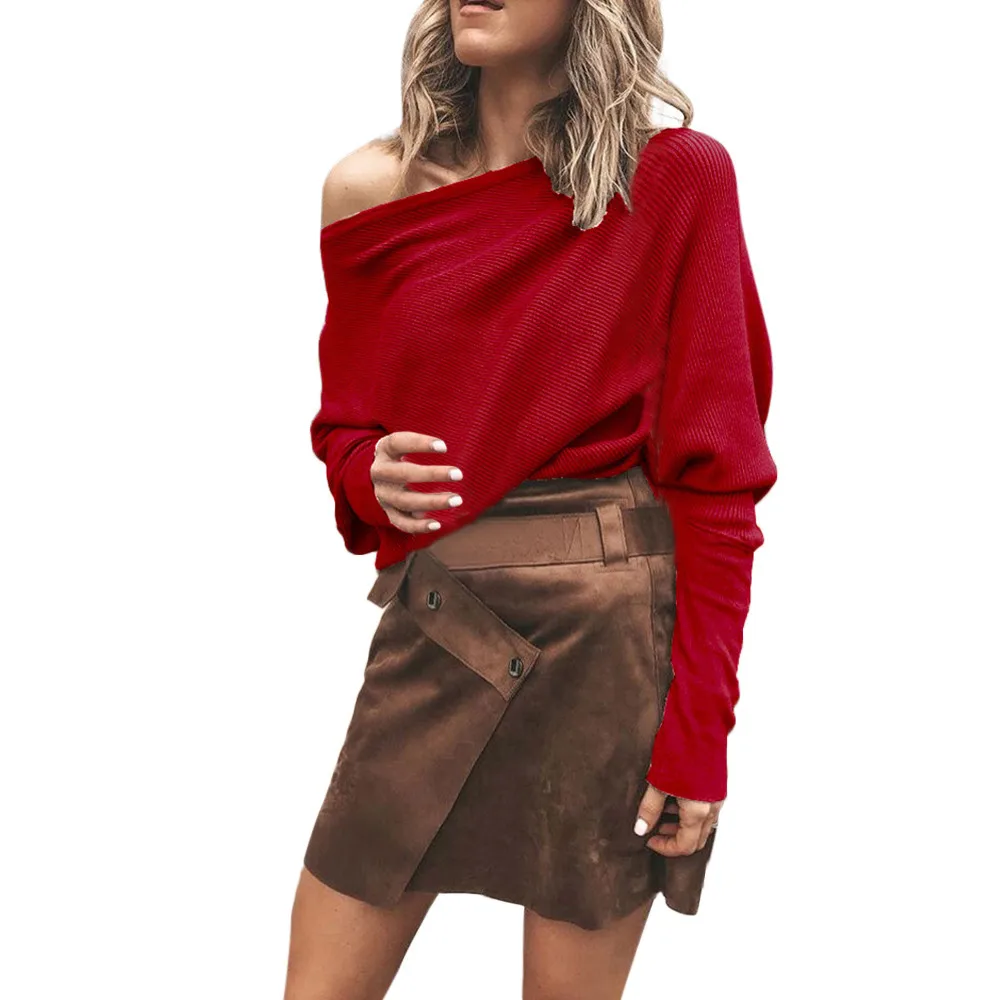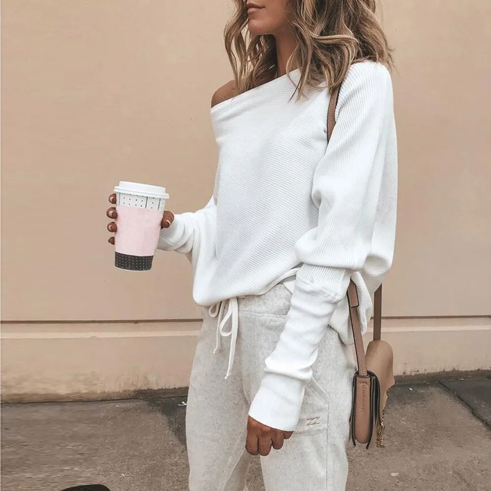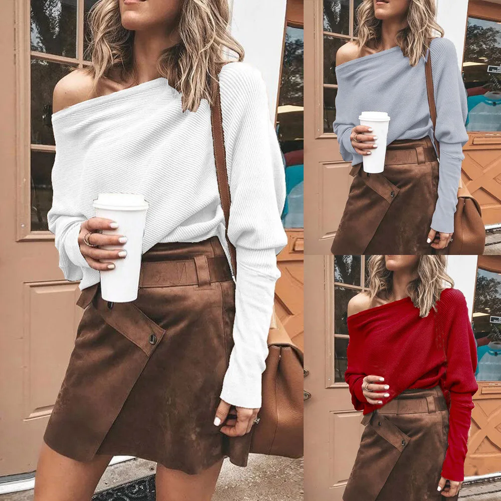 Женская сексуальная однотонная повседневная с открытыми плечами с длинным рукавом без бретелек Толстовка Топ Блузка