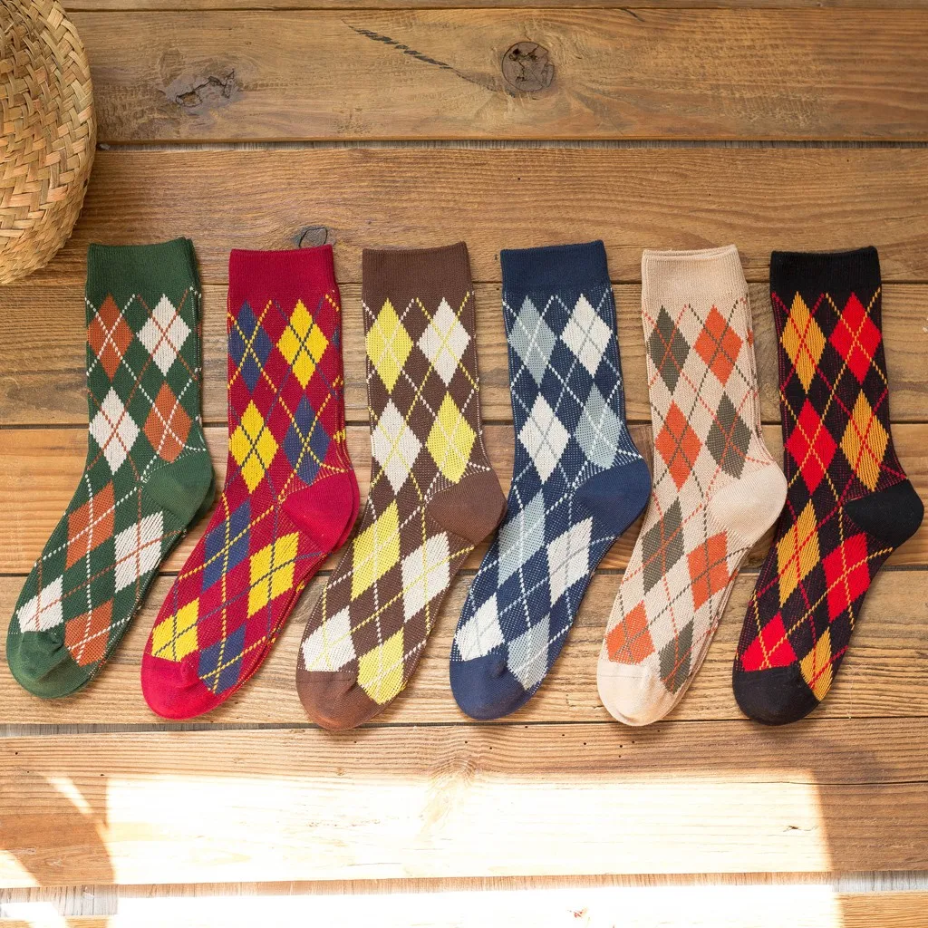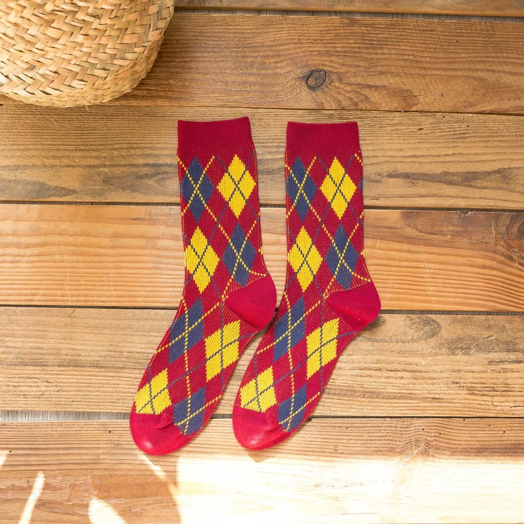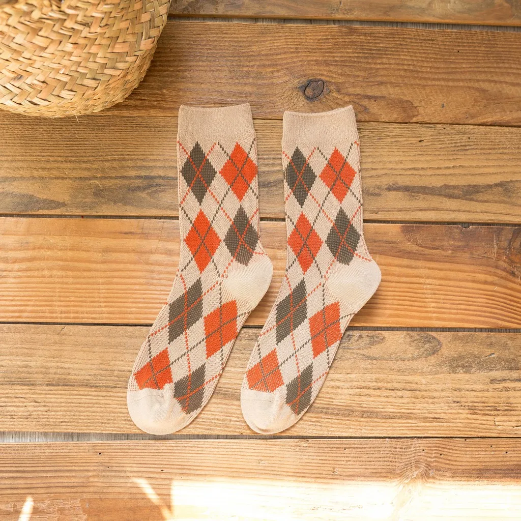 Женские зимние ромбовидные цветные вязаные носки, носки-тапочки, чулки