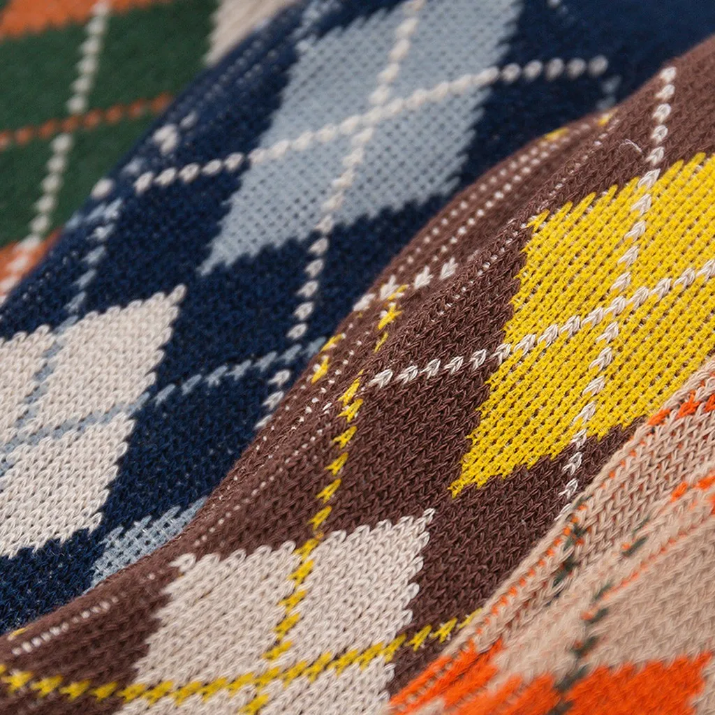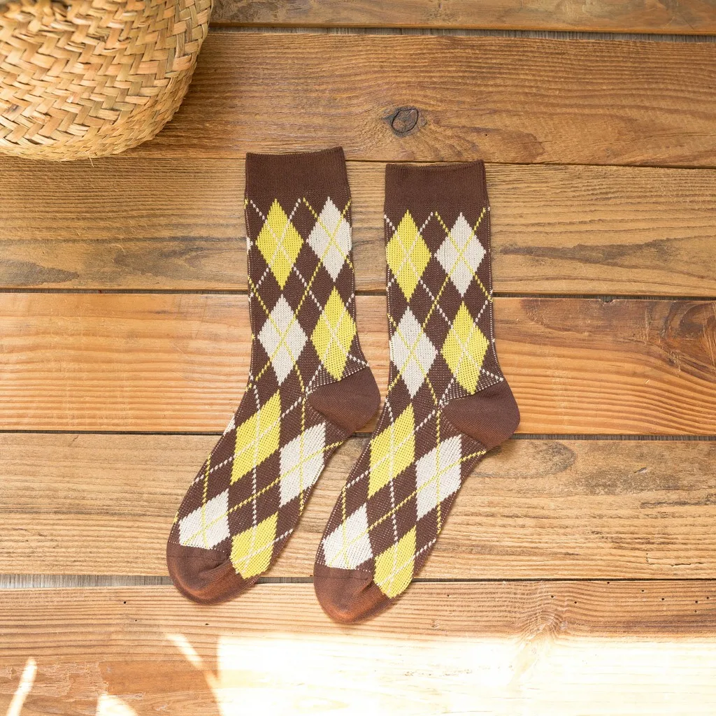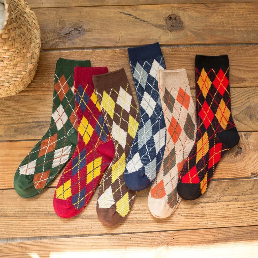 Женские зимние ромбовидные цветные вязаные носки, носки-тапочки, чулки
