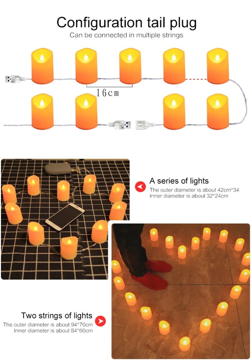 -Это романтическая свеча, которую нельзя выдувать. Нить из 10 свечей может быть размещена в любой форме без освещения по одному.