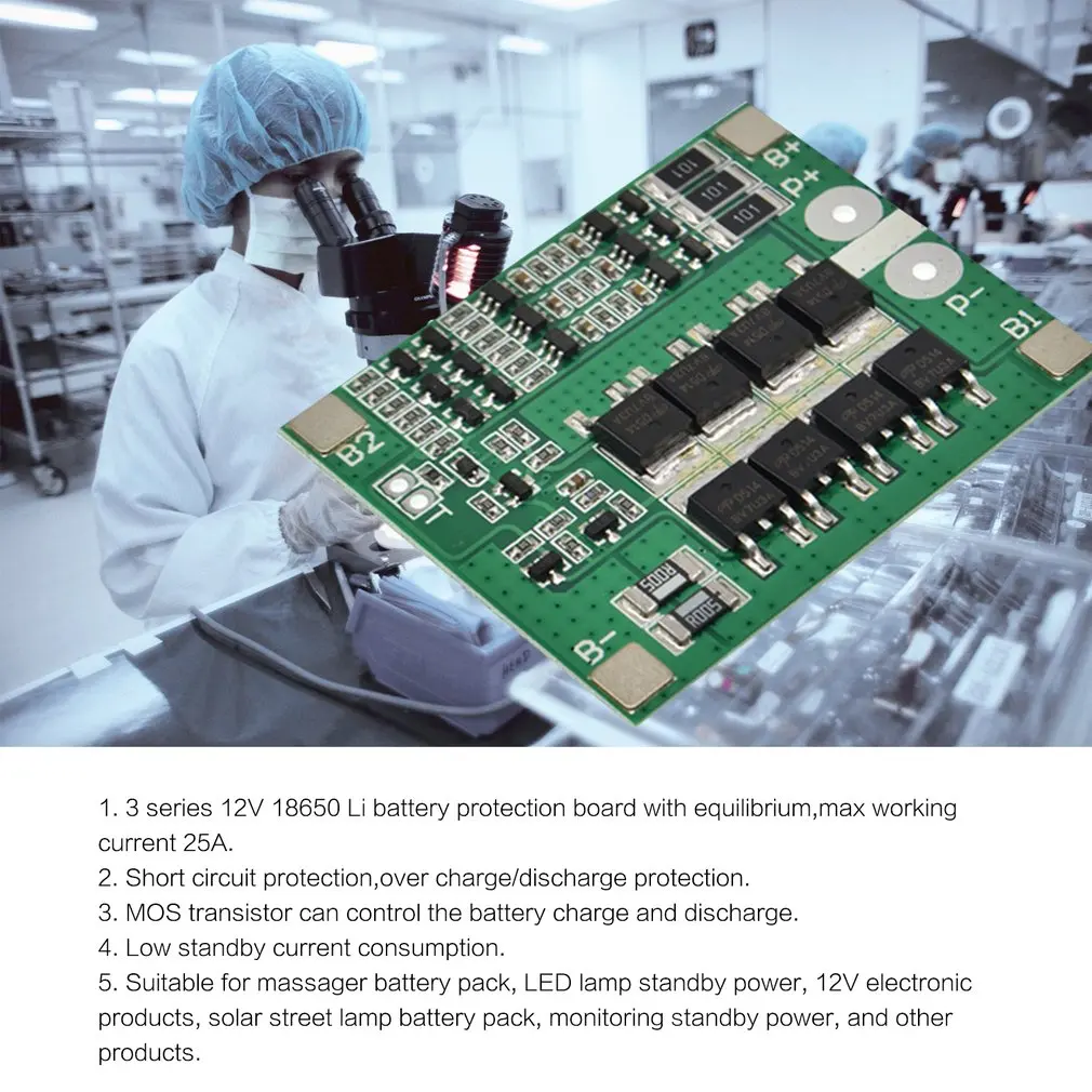 1. 3 серии 12 В 18650 Li Защитная плата батареи с равновесием, максимальный рабочий ток 25А.