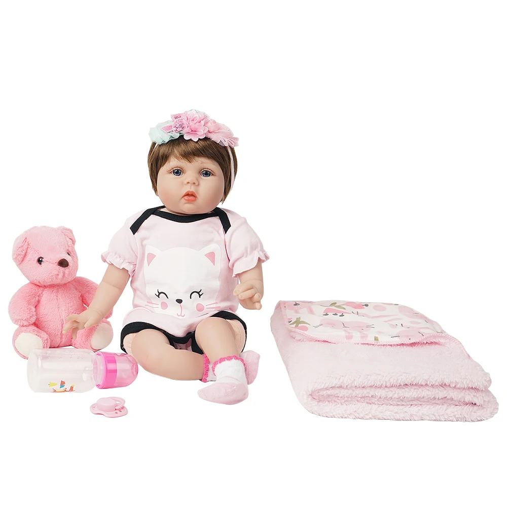 1X22 дюйма Reborn Baby Doll 1 х комплект Повязка на голову (1 шт.) Магнитная Соска-1 шт. 1 X бутылочка для кормления 1 х Игрушечный мишка 1 X Одеяло 1 X сертификат о рождения