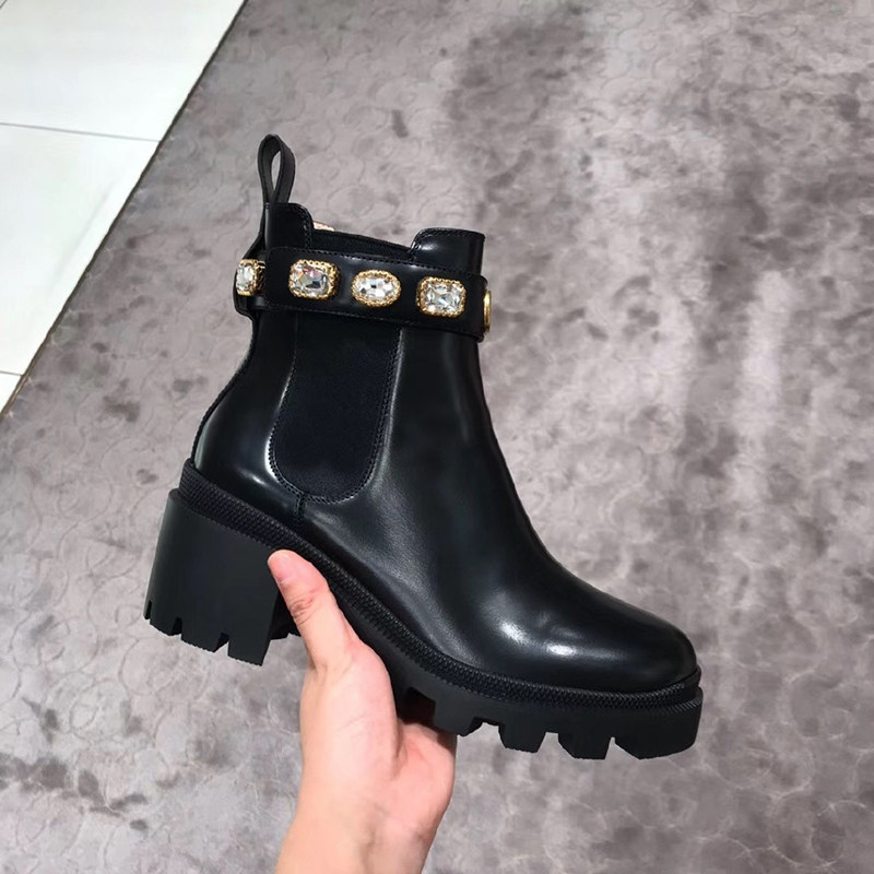 Женская обувь на толстой подошве Botte Pour Femme, обувь «Челси» из эластичной ткани на рифленой подошве со стразами, короткие ботинки, ботинки Martin на плоской подошве, зима 2019
