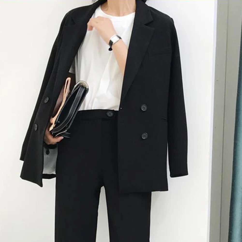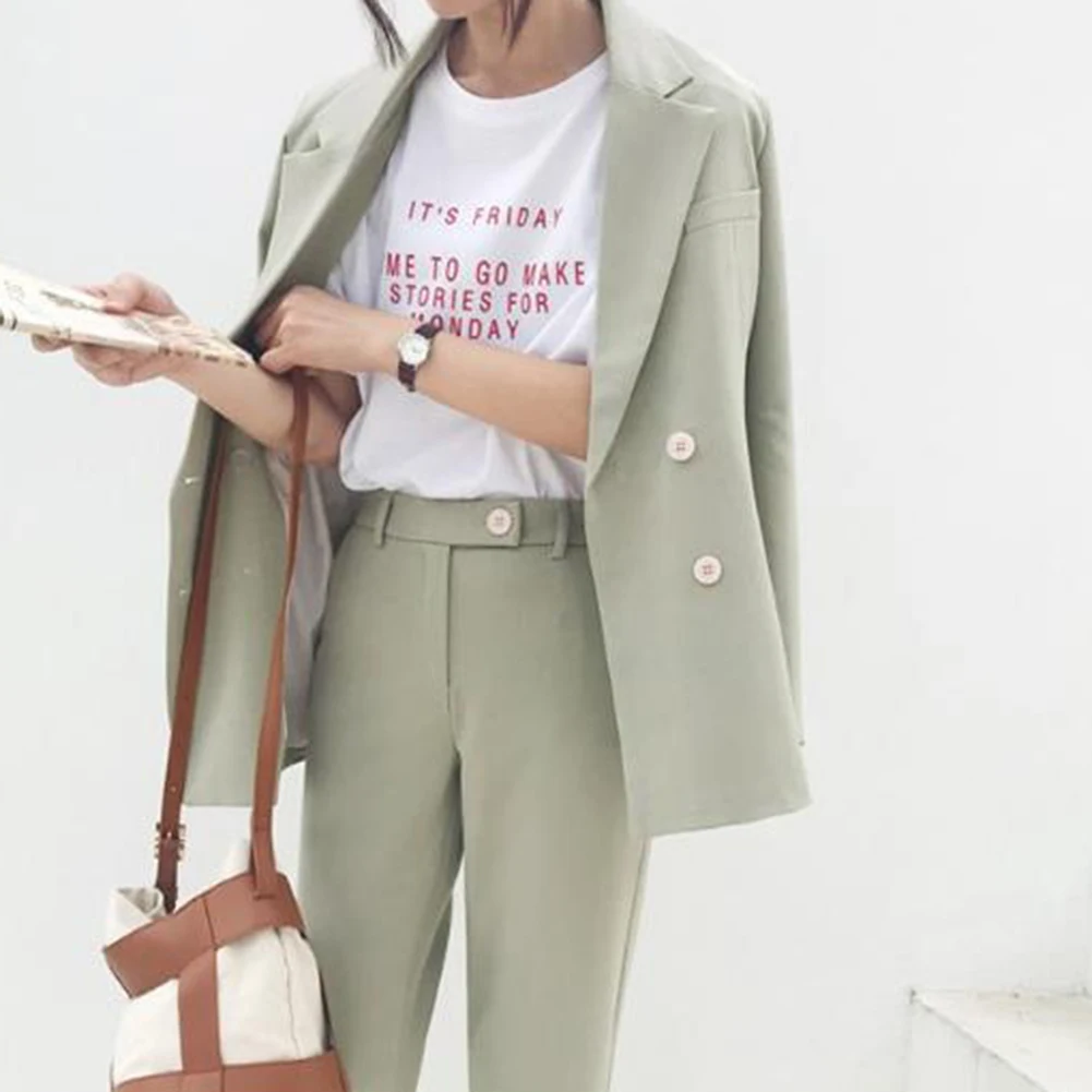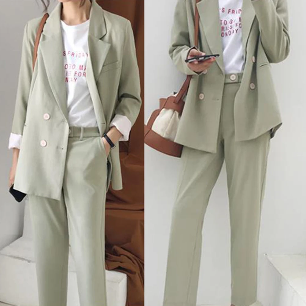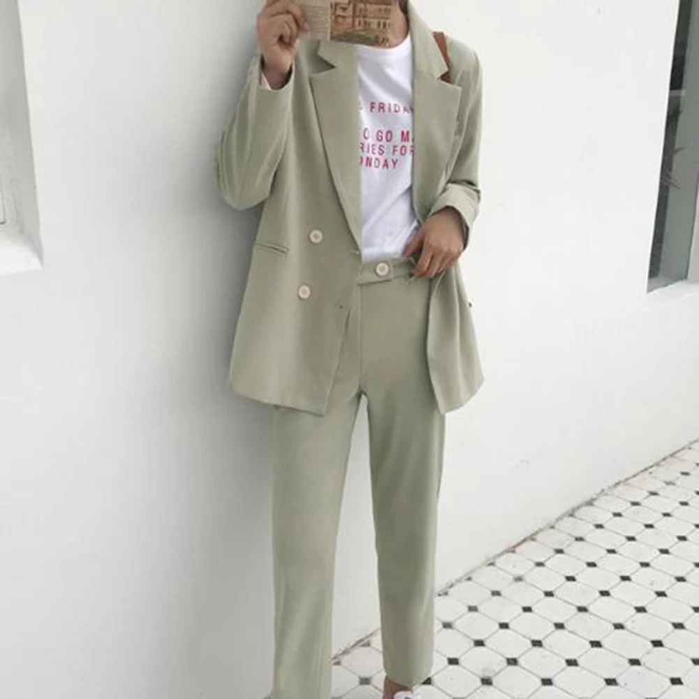 2 шт./компл. офисный женский костюм, Осенний однотонный двубортный Блейзер, длинные брюки